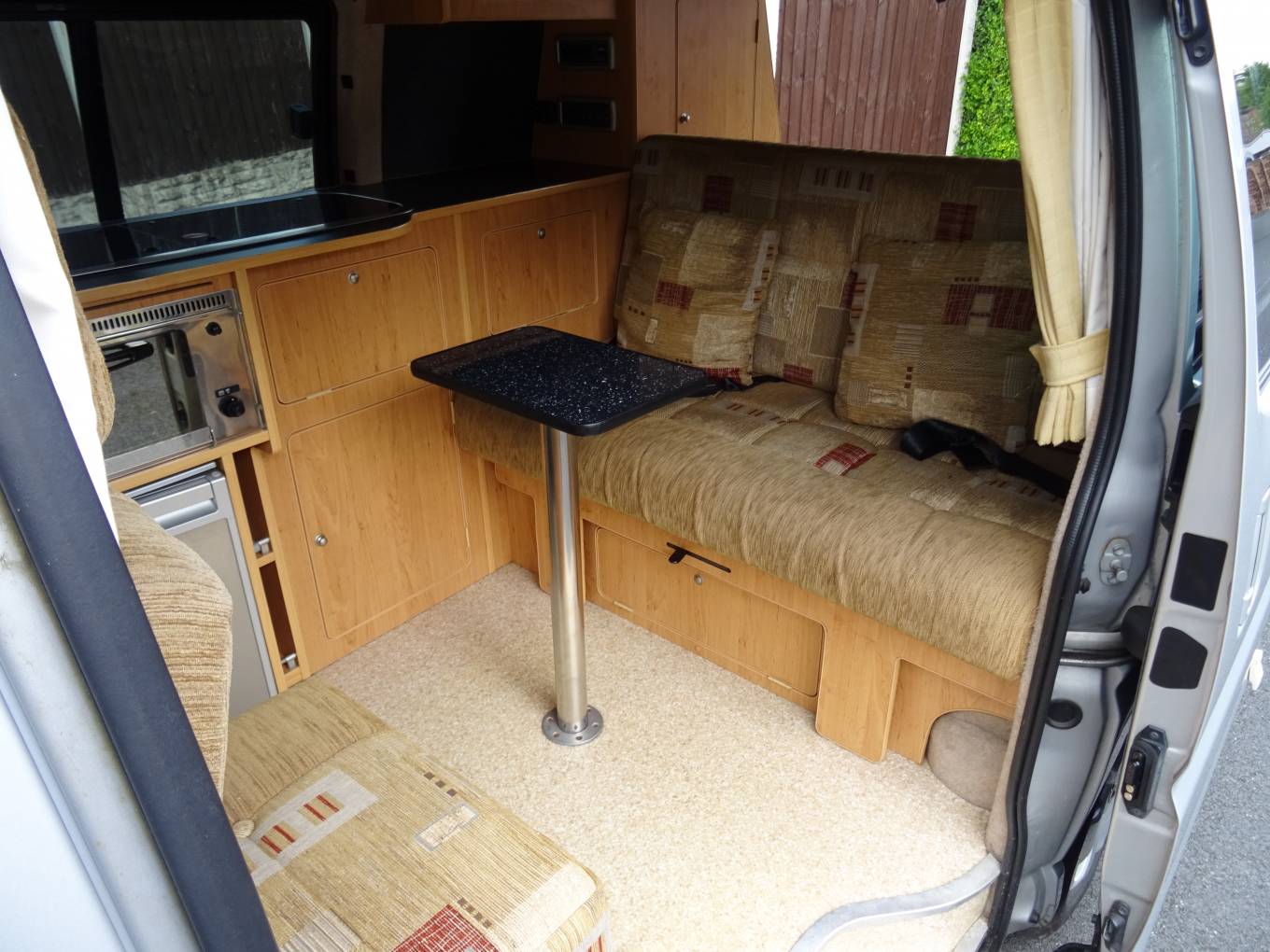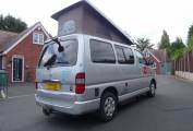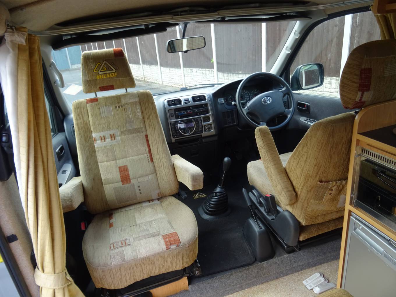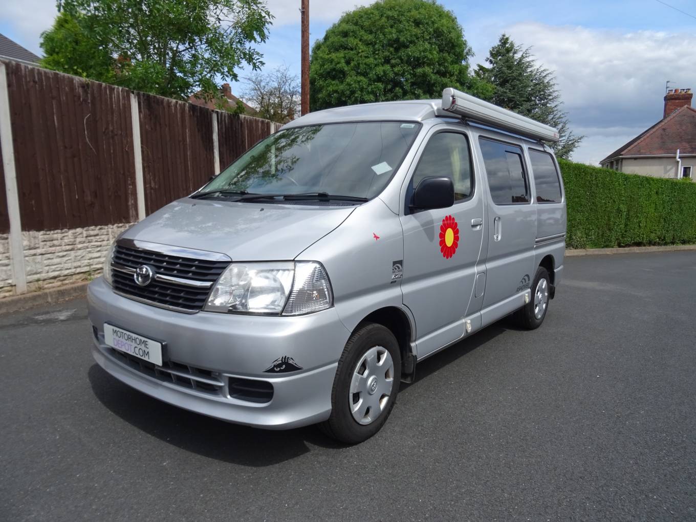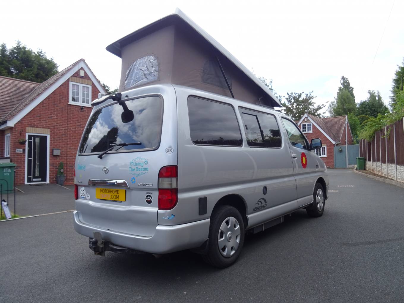 This is a quality Hillside Leisure Ashover conversion, pop top with windows. Built on a Toyota Hiace 280 SWB D-4D95, body colour silver, 2492cc diesel engine, 5 speed manual gearbox. It’s had one owner only and has a full dealership service history. This gem is happy to be used as your everyday vehicle and for your holiday adventures. The conversion is fitted with a high level of equipment, low energy fridge, 2-ring gas hob, sink, activity shower with hot and cold water. Blow air heating, insulated, lots of storage space and a porta-potti. The rock & roll bed easily converts from a seat into a comfortable double bed. Your two other births are in the pop top and can be reach with the ladder supplied.