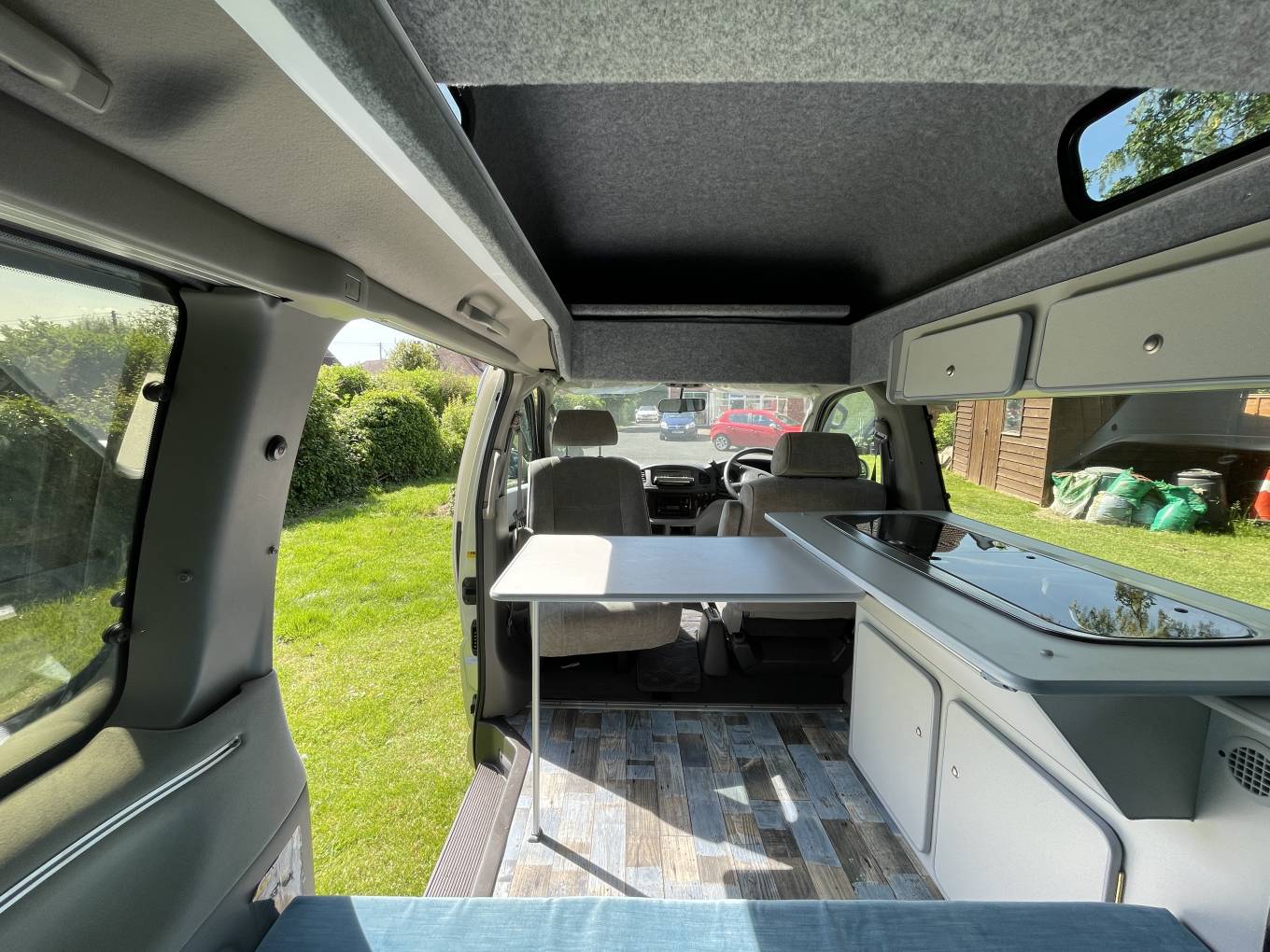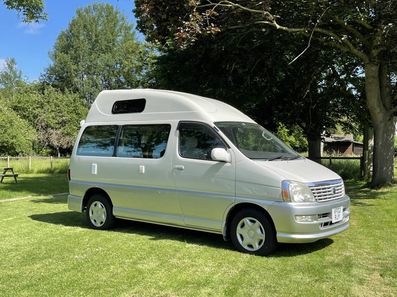 TOYOTA REGIUS AUTOMATIC LOW MILEAGE CAMPERVAN 2+2 BERTH Complete with 4 seat belts, 2 burner gas hob, sink, underseat coolbox, DVD player, 240v sockets and 12v lighting. This lovely camper was professionally kitted out in 2019 and has had very little use since. Perfect for couples or small families with 4 full 3 point seatbelts, a generous sleeping area for 2 on the fold flat sofa bed and further sleeping for 2 younger children above if required. There is ample storage under the seats , in the cupboards and up above in the roof space. Lovely comfortable long distance cruiser fitted with a smooth automatic gearbox and 2.7 Ltr petrol engine, generous seats, electric windows/ mirrors and power steering. The bodywork of the van is in exceptional condition for its age and looks stunning in pearl white, the interior conversion is still as it was when first converted due to a lack of use. Only 65000 km from new (approx 40,000 miles) Current MOT to May 2022, ready to drive away. Please call Simon on 01432 488 996 for further details or to arrange a test drive. Part exchange and finance a pleasure.
