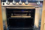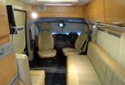When opening the barn style doors at the rear it reveals two lockers housing the Thetford waste cassette and gas bottle and a cleverly stored dining table top. The dining area can seat three people comfortably utilizing the passenger captain chair and there is a TV above the single seat for your evening entertainment. When you are ready to retire for the night the area quickly converts to a large double bed. The campervan also benefits from having a diesel operated Webasto blown-air heating system and solar power system making this a great off-grid vehicle. In the cab the driver has Air-Con, cruise control, electric windows and the all important Remis Cab Blinds. Insect screens and blinds have been fitted throughout the campervan.
