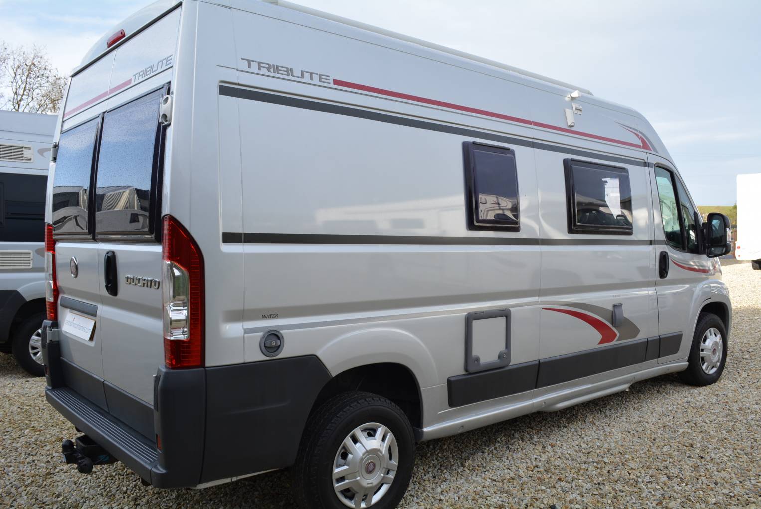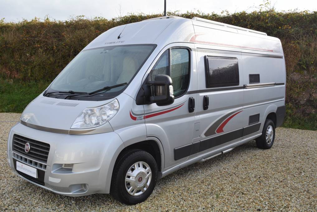 **viewing by appointment only** 2012 Trigano Tribute 4 berth Camper for sale. Featuring a layout that is ideal for 2 persons or can travel and sleep 4 persons with a unique rear double bed layout, either as 2 doubles or one double bed with storage beneath. This factory conversion features many of the comforts of a coach built Motorhome with a mid ship washroom including toilet, basin and shower, kitchen area with hob, grill, sink, 3 way fridge, hot water, fresh and grey water storage tanks, onboard blown air heating, front lounge area with twin swivel chairs and 4 belted travel seats, air conditioning, cruise control, cab blinds, solar panel and tow bar. Based on a Fiat Ducato 6 metre chassis with a 2300cc 130hp engine and manual transmission making this Trigano Camper effortless to drive and park. Some age related marks but overall a great Camper making it great value for money. Sale will include mechanical inspection, habitation inspection, gas certificate and 1 years warranty. FINANCE AND PART EXCHANGE AVAILABLE. PLEASE CALL FOR FURTHER DETAILS.