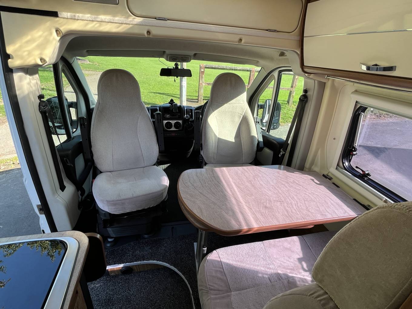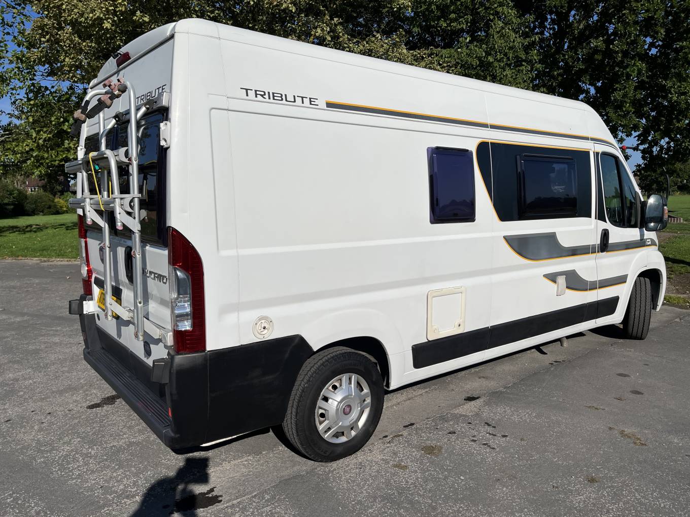 Trigano Tribute 669, 3 Berth Campervan with Rear Bedroom. This 6 meter van is compact enough to go to those remote beauty spots but still gives good living space and facilities. It has been well maintained with good service history including new cam belt. At the rear there is a multi purpose space which can be a double bed, a lounge area or large storage space. In the centre is the bathroom and kitchen and at the front is the dining area with 2 captains seats. It comes with 4 seat belts, Cruise Control, Rear Camera, Blown Air Heating and Hot Water, Bike Rack and Spare Wheel. It also comes with 2 sets of keys, gas bottle and mains lead. Available for view by appointment in Preston, call for more photos and information.
