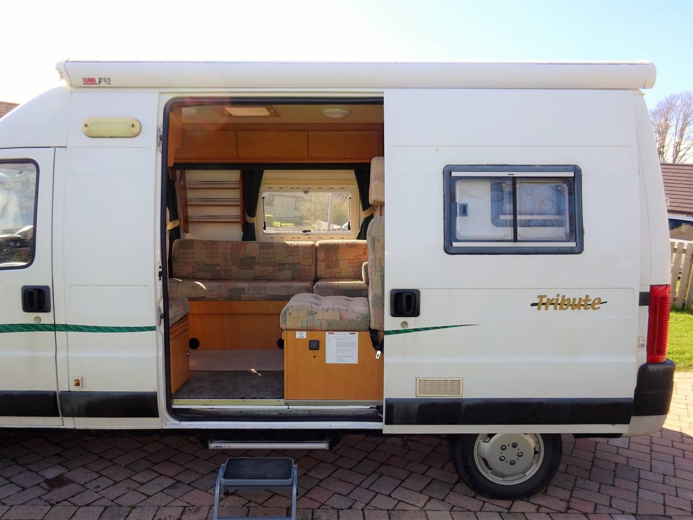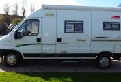 A lovely 2.3 Manual Diesel Fiat Coachbuilt Trigano Tribute with 3 seatbelts and a double bed/ 2 single beds.