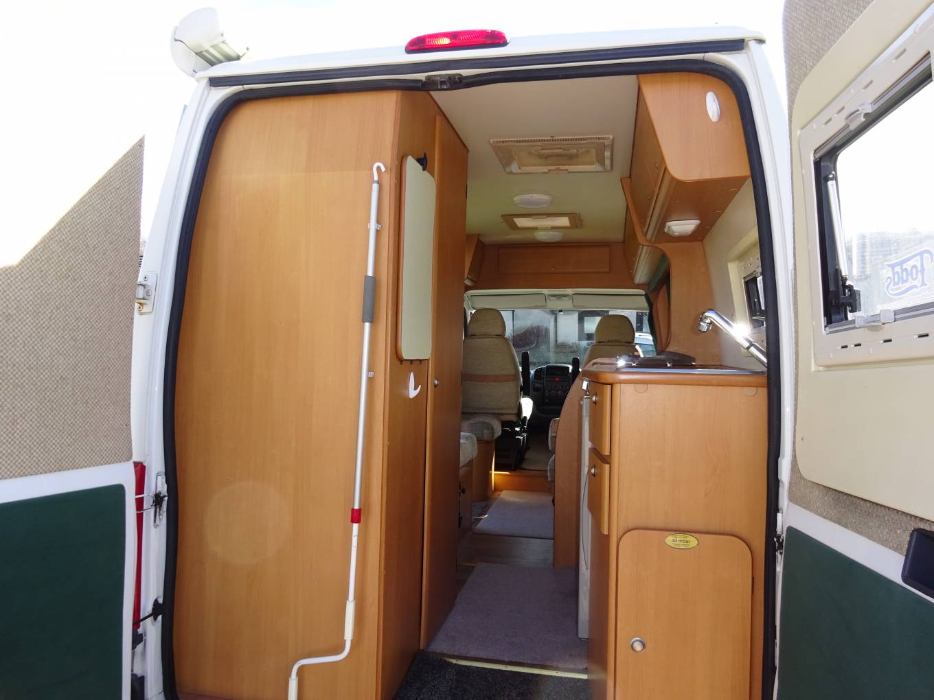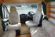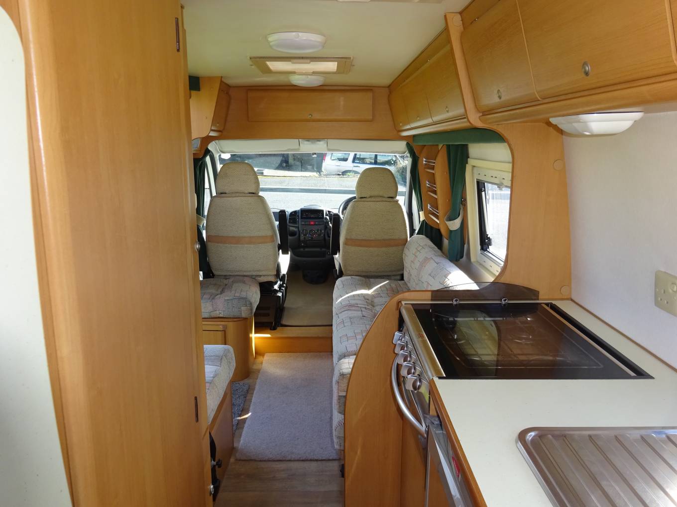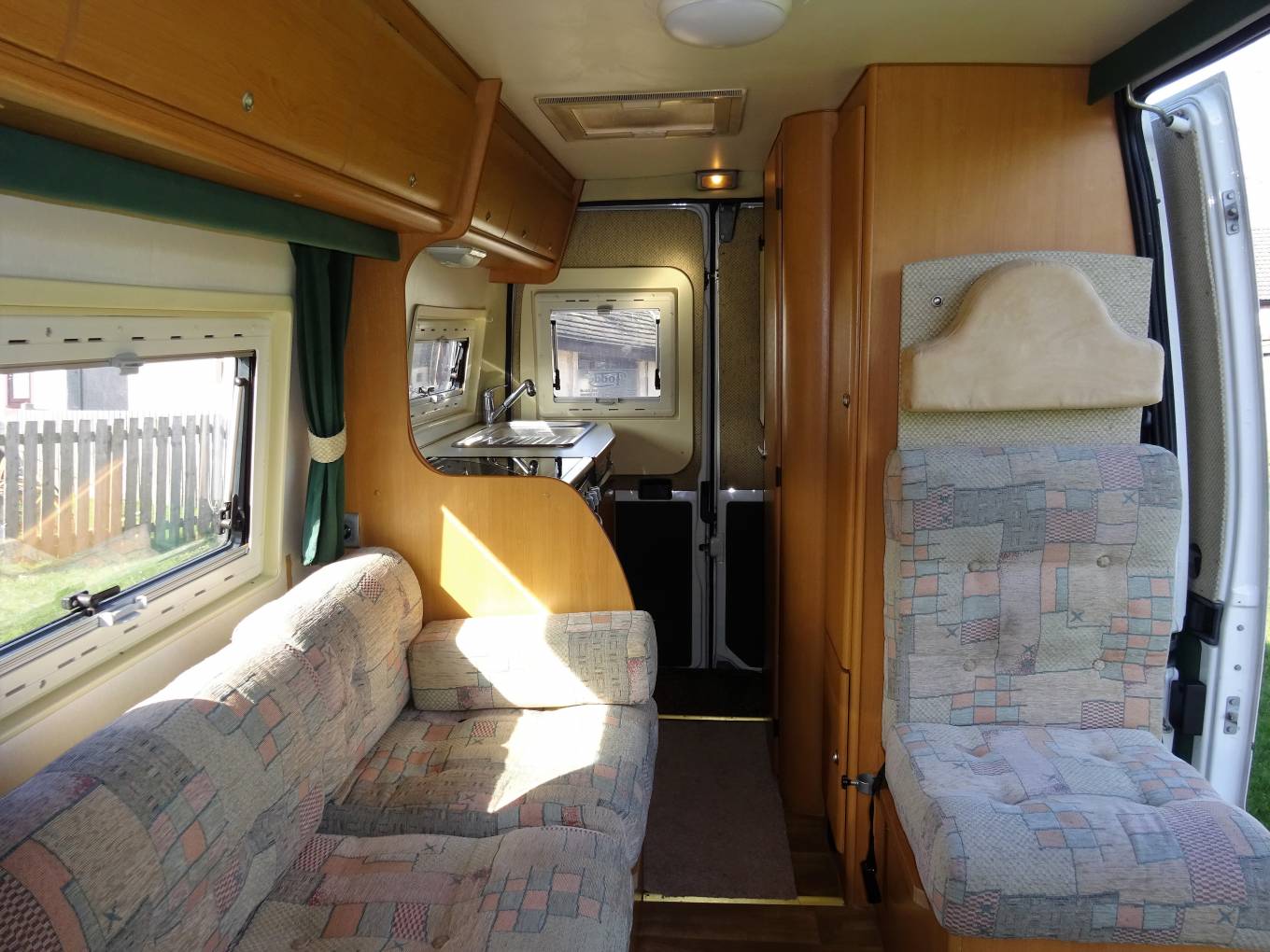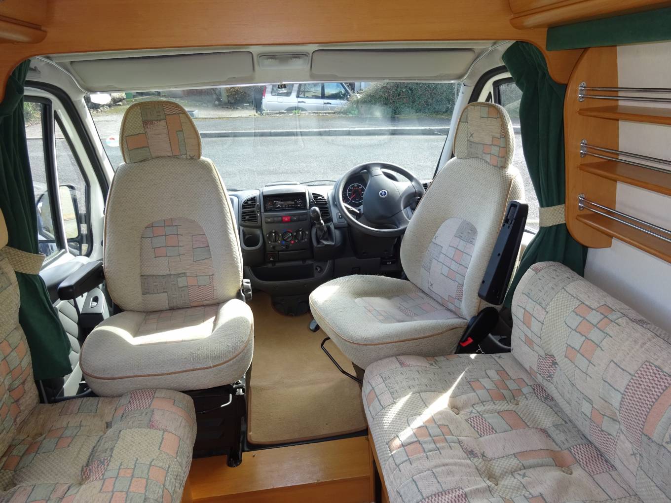 This vehicle benefits from a front lounge dinette with use of the swivel driver and passenger seats, which converts into a large double bed or 2 single beds. The upholstery is in good condition, with wear commensurate with age.