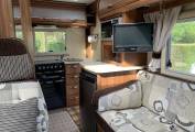 The dinette is incredibly spacious and is flooded with light making it a fabulous spot to relax and unwind in. Firstly you have the rear two traveling seats with a large dinette table in front. Down the passenger side there is a single side facing sofa and along with the front swivel seats you'll never be short of space. All these seats combine to make the large double bed.