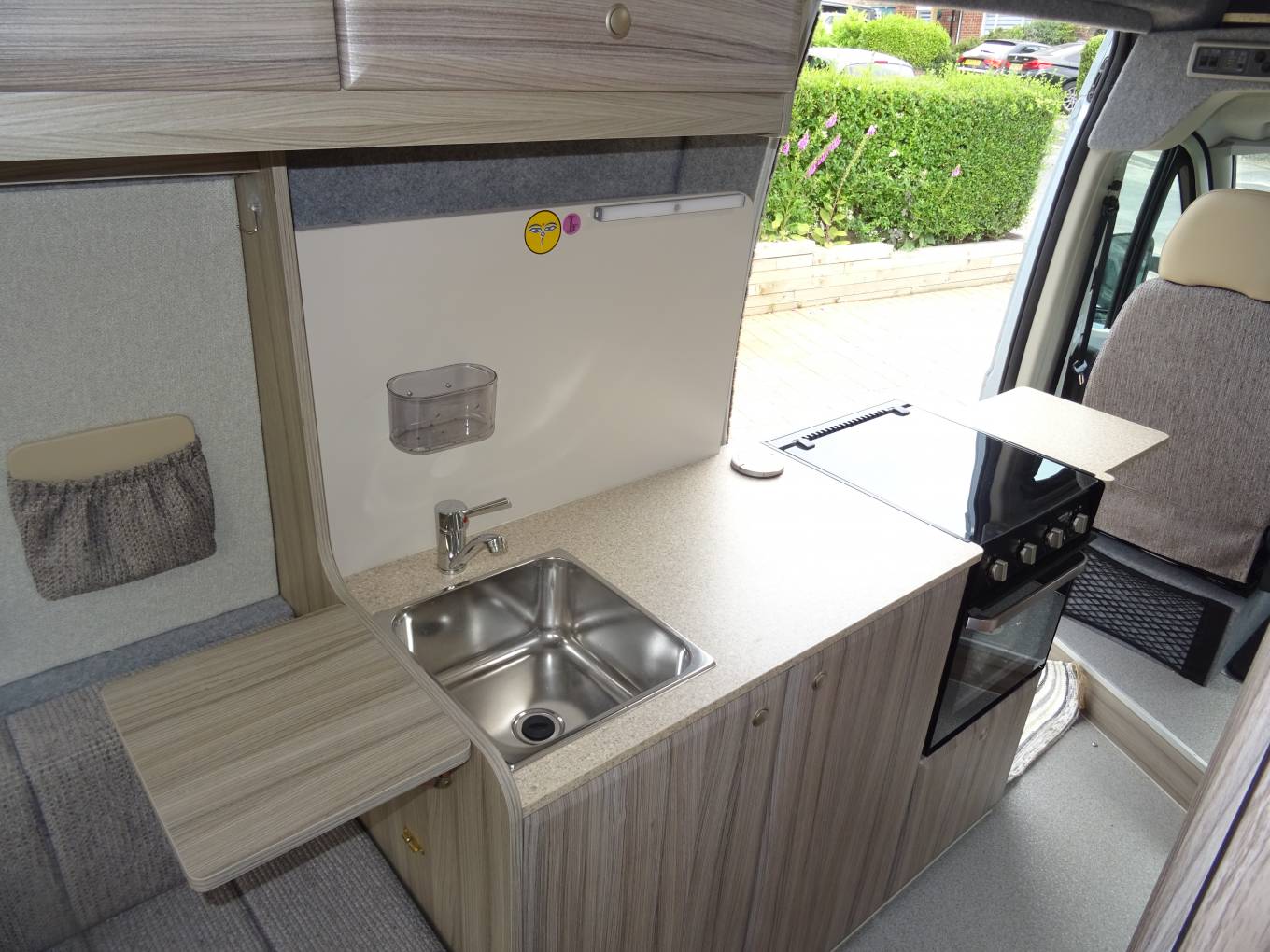 ring hob, fridge with small freezer compartment, sink and plenty of storage for