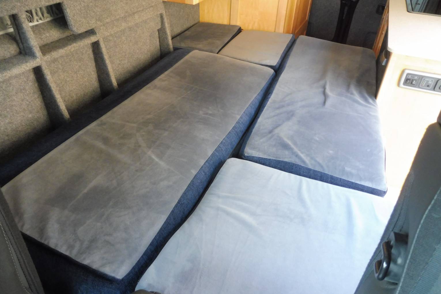 Motorhome Depot are delighted to present this beautiful camper conversion based on the top of the range LWB Vivaro Sportive. Open the doors and you are immediately struck by the quality and craftsmanship which has gone into a well thought out camper. I hope my photos do the van the justice it deserves. The hand-crafted light maple wood cabinetry perfectly offsets the luxurious blue furnishings. An L-shaped lounge area converts easily into a comfortable double bed with memory foam mattress. The side kitchen is fitted with a deep sink, integral 2-burner hob and 12v fridge. And at the rear of the van is the item sorely missed in most campers-a fitted Thetford cassette toilet. An Eberspacher diesel heater ensures a toasty living area no matter the weather outside. Add in 240v hook up, LED roof lighting, fully lined storage spaces and you will be camping in the best of comfort. Included in the sale is a tent-based awning for extra room and a nifty little electric shower to enable totally self-contained vacations during these difficult times. Contact me for further details and additional photos. The vehicle can be viewed in Ross-on-Wye.