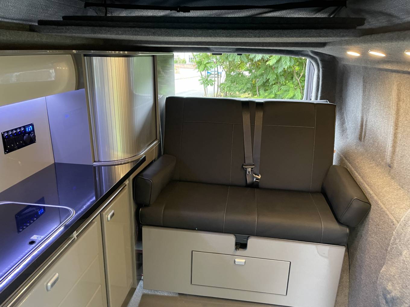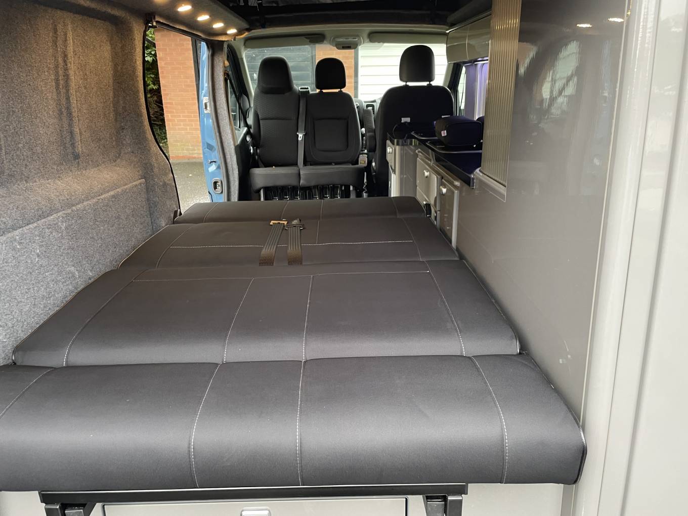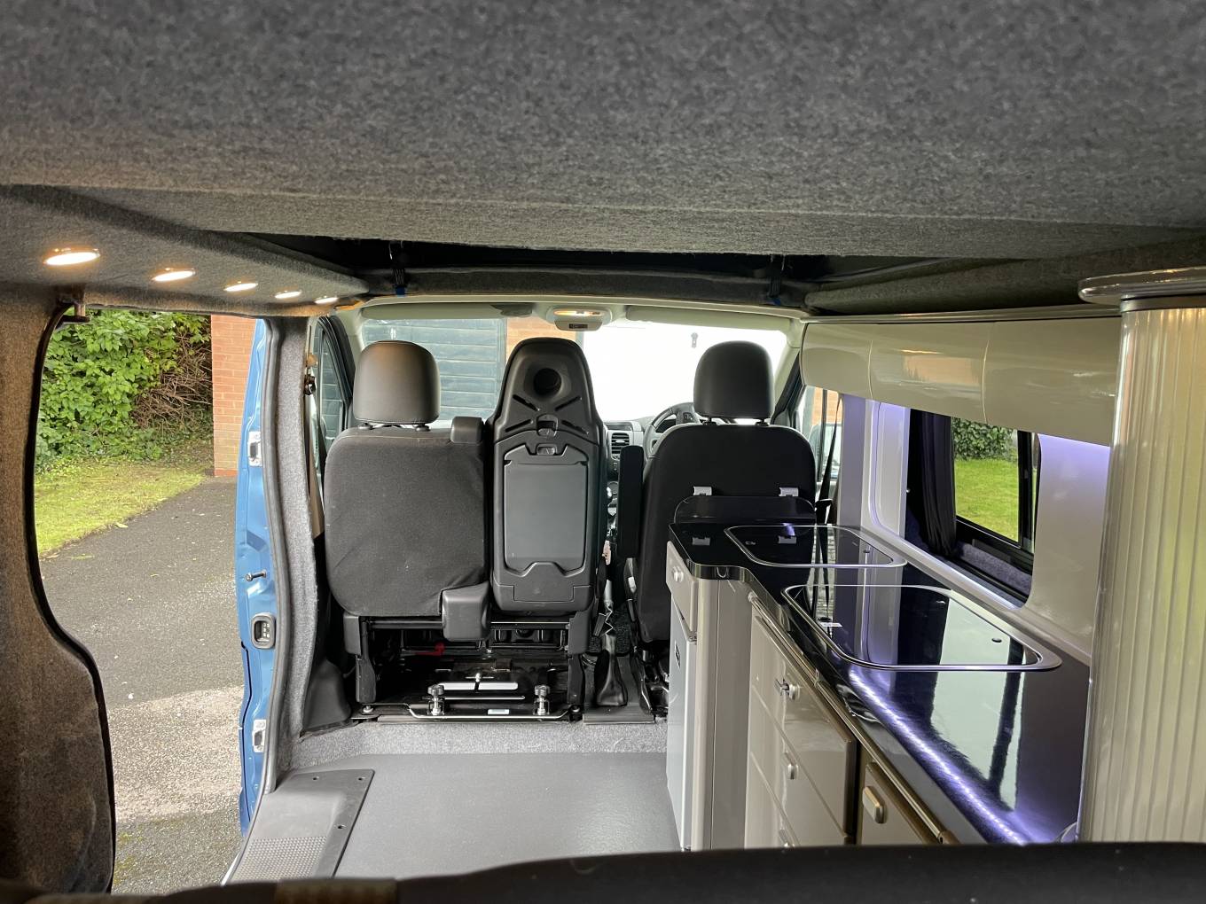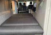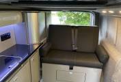 In great condition all around with fantastic outside looks matched by a modern high gloss grey interior, a pop top roof with a rock and roll bed. With 5 seat belts and the twin captains seat at the front this is a van for everyone to enjoy whether for a week in the sun (this van does have cab air conditioning) or a festival weekend; and there is plenty of room inside, being a LWB but still able to be parked in an ordinary parking space. A well serviced 1.6 ltr biturbo diesel engine with a six speed gearbox and a low mileage of 78,701 gives you a campervan that is all ready to go explore the world and enjoy!