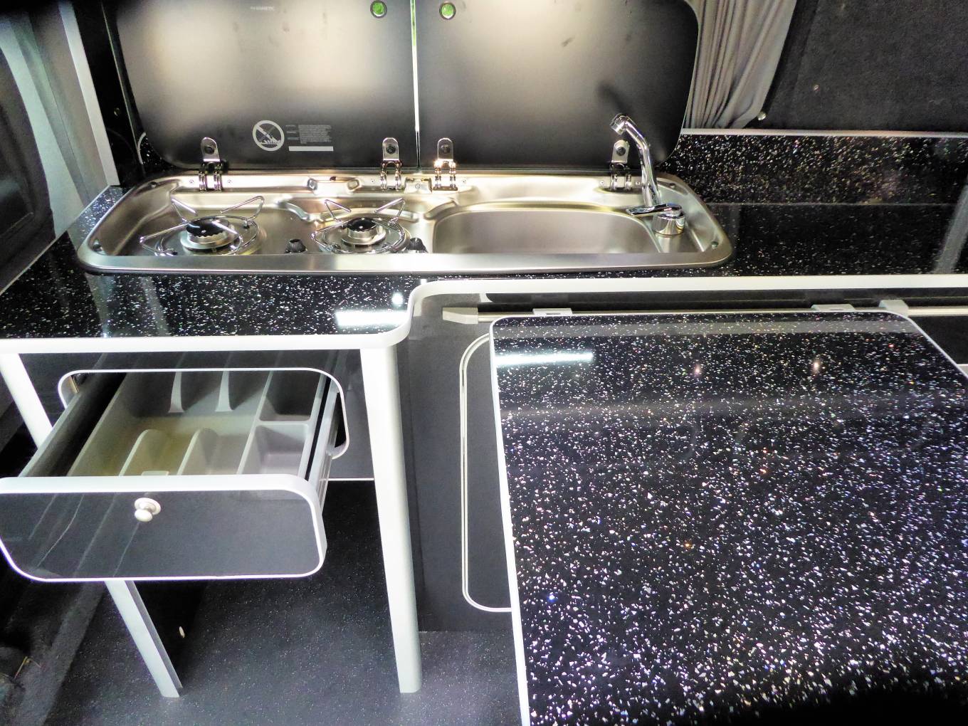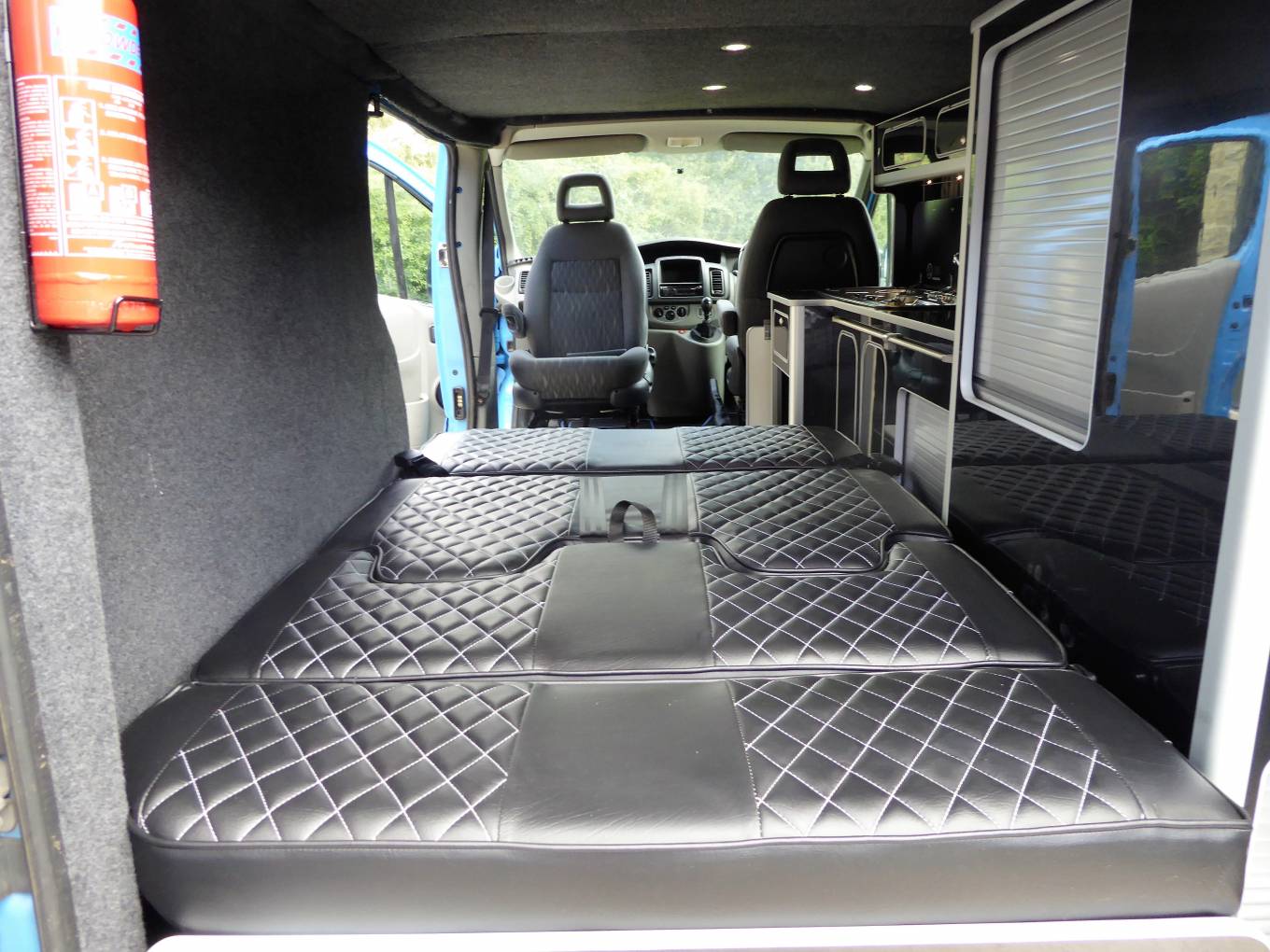 Call with any questions 01423 609985. This is a Vauxhall Vivaro LWB van conversion, that is an ideal starter van for camping and can be used as a day van. This is the 2nd conversion, that we have sold by the owner, and the interior fixtures and fittings match those seen on campervans that are bought from new for significantly greater amounts of money. The workmanship is excellent and its distinctive in a sky blue colour. There is a rock and roll bed, with leather upholstery, which also has 2 full seatbelts. The kitchen area has a 2-gas burner stove, sink and tower with 3 electric sockets that can be hidden from view if needed; the water tank and leisure battery sit underneath. The worktop matches the table and have a stunning black quartz effect finish. It has 6 speed manual transmission and the passenger seat swivels. The bodywork has a few blemishes on it as you might expect, but nice touches include, the running boards that add to the appeal, alloys in great condition, central locking on all doors. The conversion is excellent, and this campervan should be seen at the earliest opportunity in Leeds. Part Exchanges welcomed on this vehicle, for further information and photos please call us on 01423 609985 quoting reference 132257.