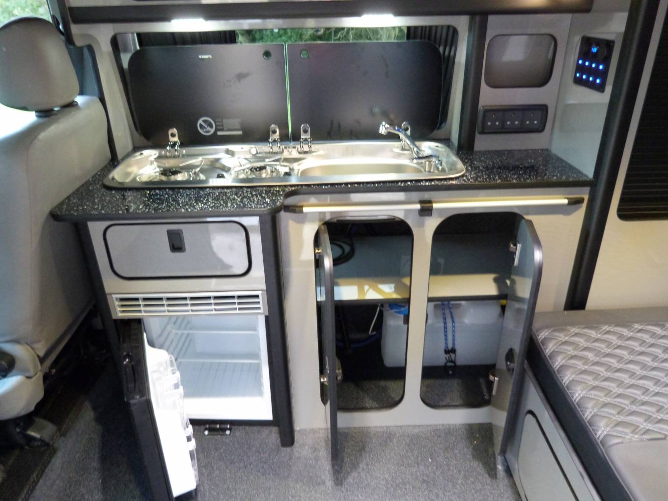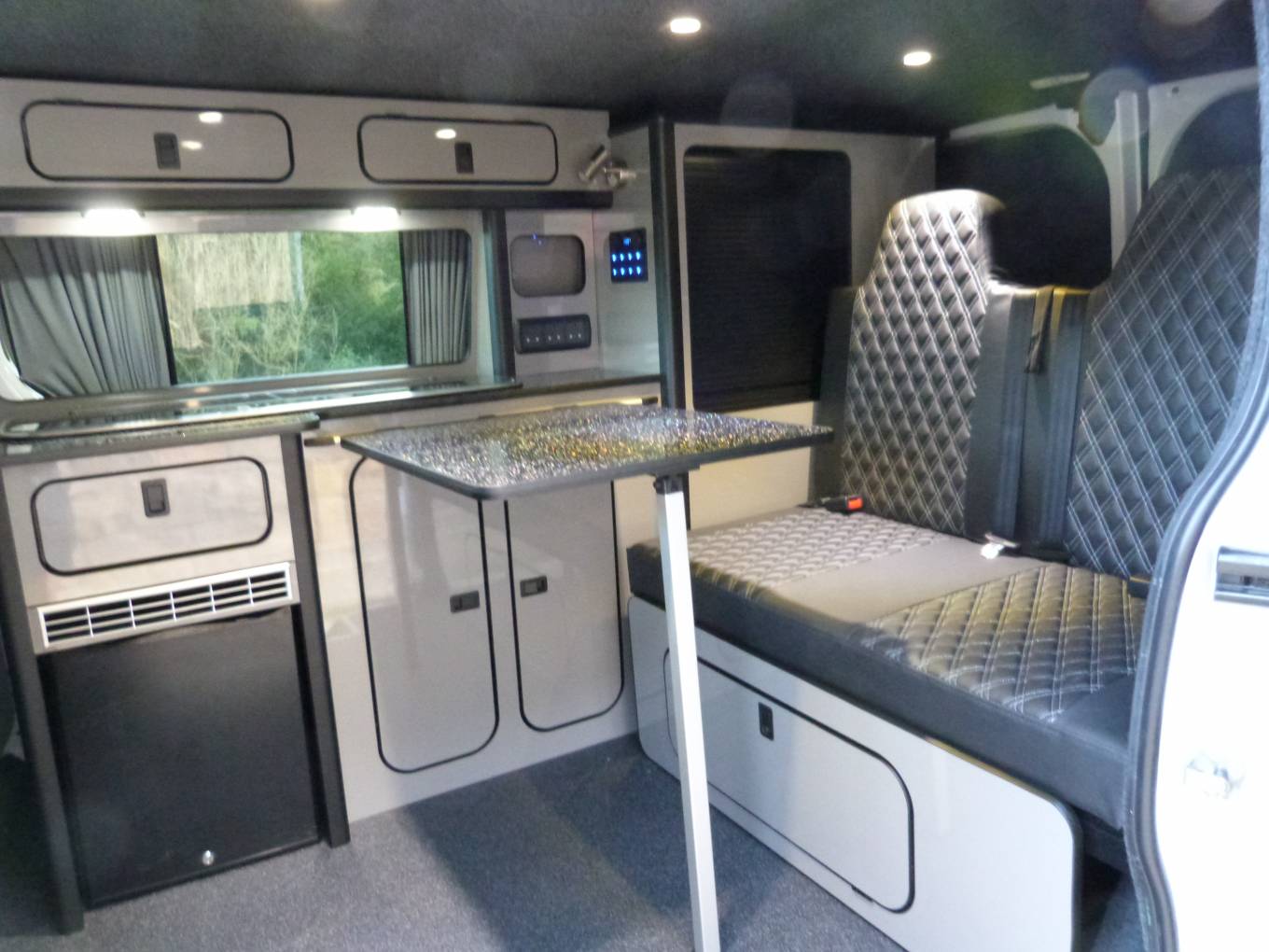 Call with any questions on 01423 609985. This is a great example of a self-conversion on a Vauxhall Vivaro panel van, that was completed on 12/09/2021, so never been used. This is the 5th conversion sold by this broker. If it were a VW with the high standard of conversion is would easily be £10k more. This 2 berth, SWB, white coloured campervan, was registered in 2014 and works as a camper and a family day van with 5 full seatbelts, it will fit into a normal parking space. The bodywork, alloy wheels, tyres and interior are all in excellent condition. At the rear is a Rock n roll double bed that also then acts as a bench seat, with 2 seatbelts, to combine with the table to create a nice area for entertaining. The galley kitchen area has a fridge, 2 burner gas hob, plus sink. Up front, there are 3 seatbelts, 6 speed manual transmission, radio/ CD, Good additional features include 180W solar panel, leisure battery, soft close door fittings, roof mounted spotlights. It has travelled 157,664 miles, with MOT until August 2022. It should be viewed at the earliest opportunity near Skipton. Call with any questions on 01423 609985 and quote reference 163698