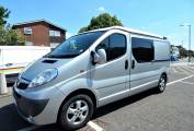 What a great campervan this Vauxhall Vivaro is, converted by Sussex Campervans in Horsham. The Vivaro is a Long Wheel Base version with a 2.0 TDI 113 BHP diesel engine & a 6 speed manual gearbox. The cab benefits from: electric windows; electric mirrors; air conditioning; power steering; single CD player with digital display. The vehicle has 6 belted seats so ideal as a family mover & weekend camper. The front layout is a single drivers seat and a double bench seat for passengers with 2 x 3 point seats. With only 2 owners from new it comes with a comprehensive service history by a local garage in Brighton recent MOT no advisories.