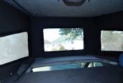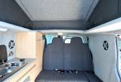 The pop top is released from the front of the van & can be used without roof sections if there is just two people camping. It then makes a light airy space within the van or with the sections, it will then make another double berth. The tented sides have a front clear screen for light, and two side vents with mosquito netting.