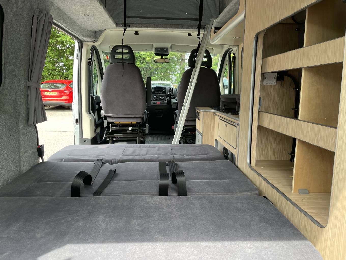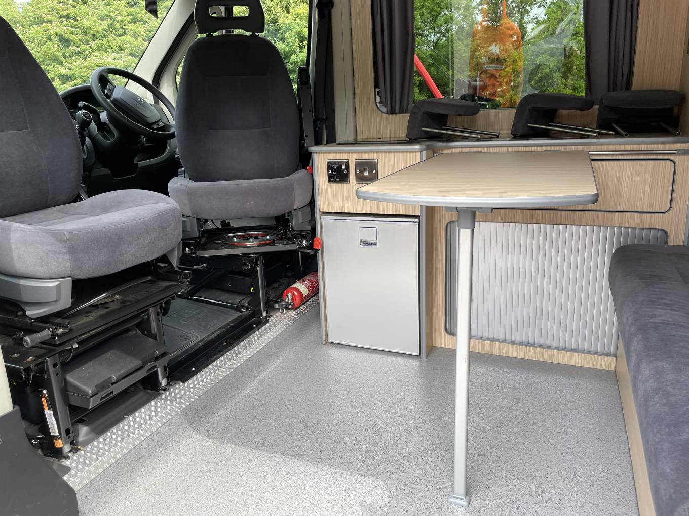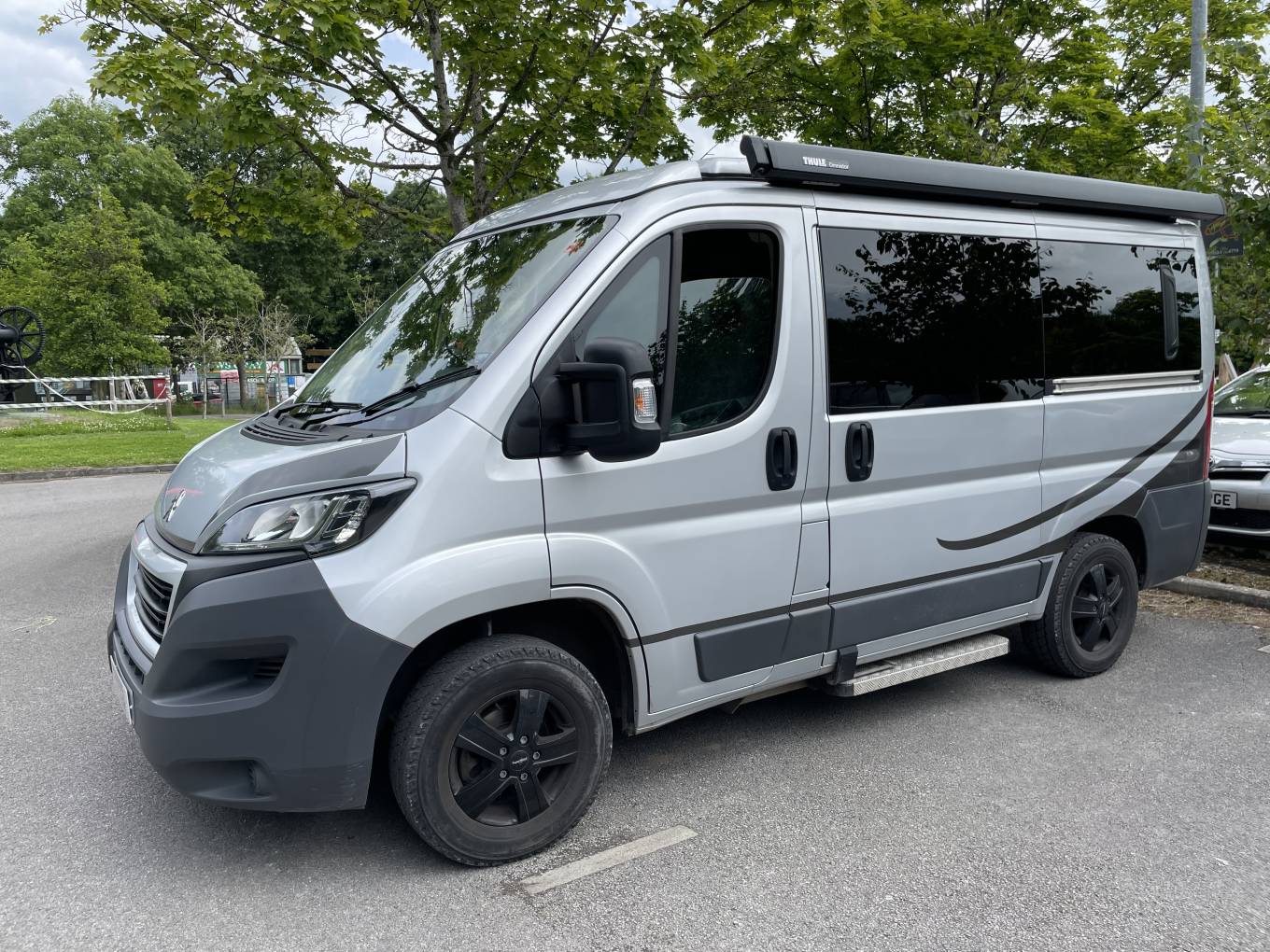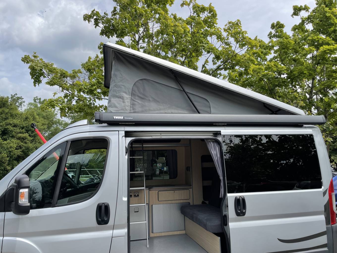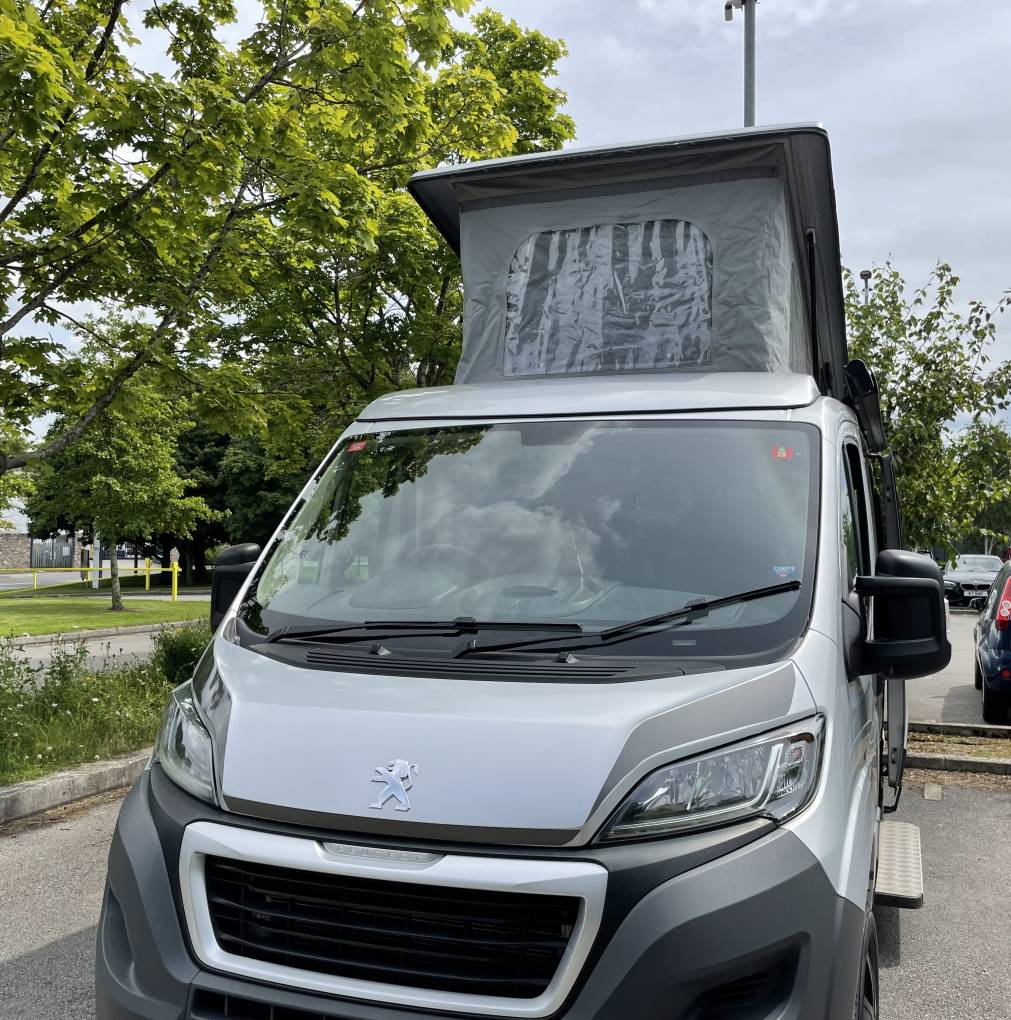 Converted to a high quality and spec by Ventura Campervans this Plus version, based on a Peugeot Boxer chassis ,has great looks outside and all the comfort and luxury that you would want or need for a family adventure. This campervan manages to trick the eye with its ample roomy interior packed into a van that will fit into a standard car parking space. With the pop top roof and the rock and roll bed this camper sleeps four with the captains’ seats ensuring that there is plenty of room during the day for family living. With its outside Thule awning this van is great for finding a view stopping sliding back that side door and looking out across the scenery in front of you, whatever the weather. With no fuss and no bother this high-quality van is great for touring Britain or adventures further afield, with its deceptive size making this a real winner.