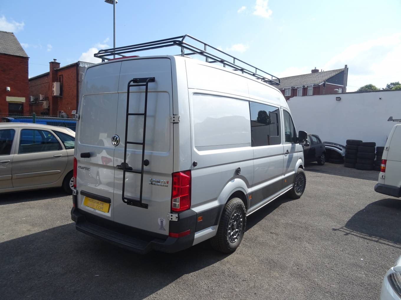 In the cab there are many features which include a multi function steering wheel with cruise control, apple car play park pilot along with electric windows and mirrors. Externally there is a large bespoke roof rack and rear fixed ladder.