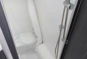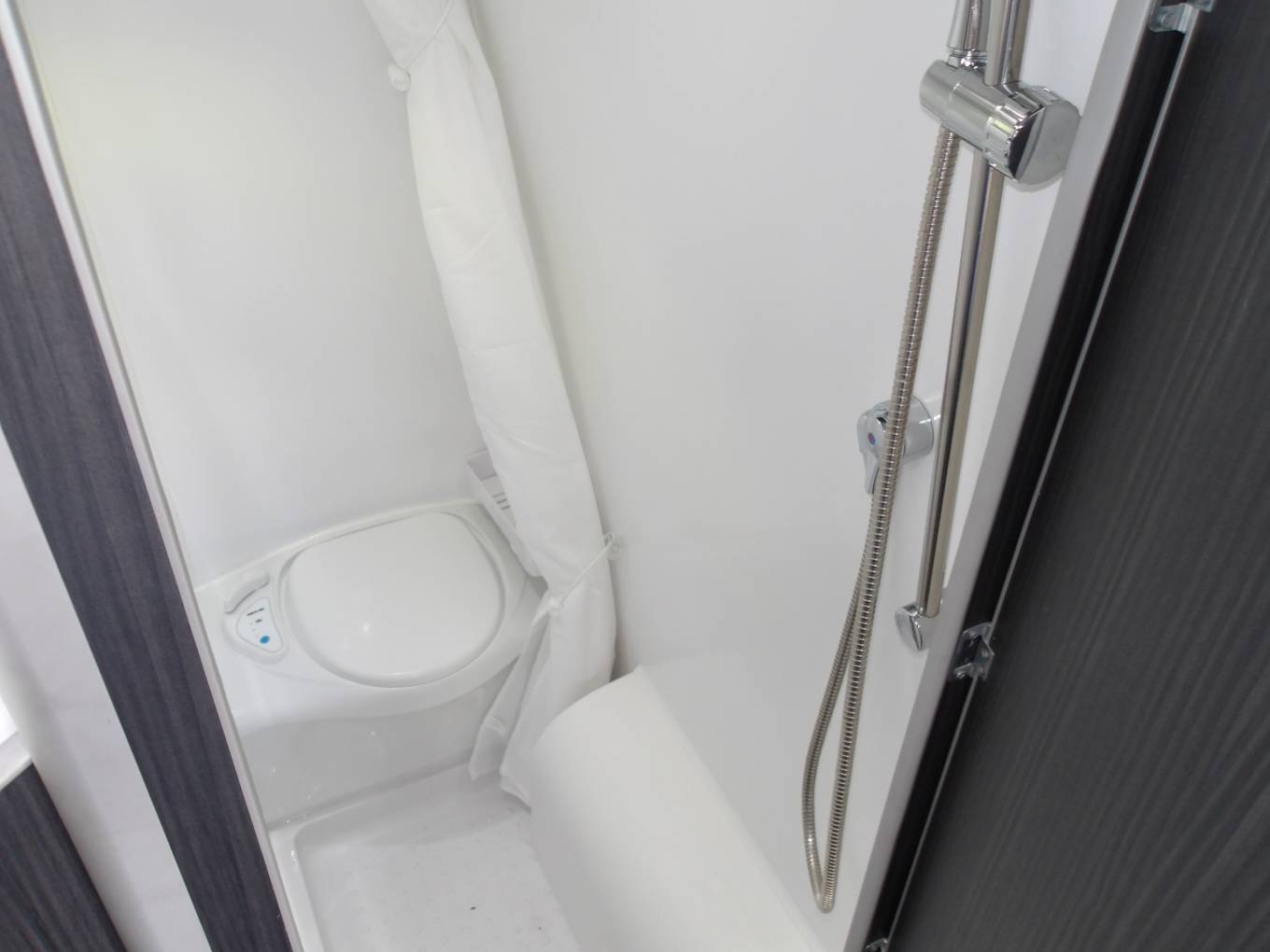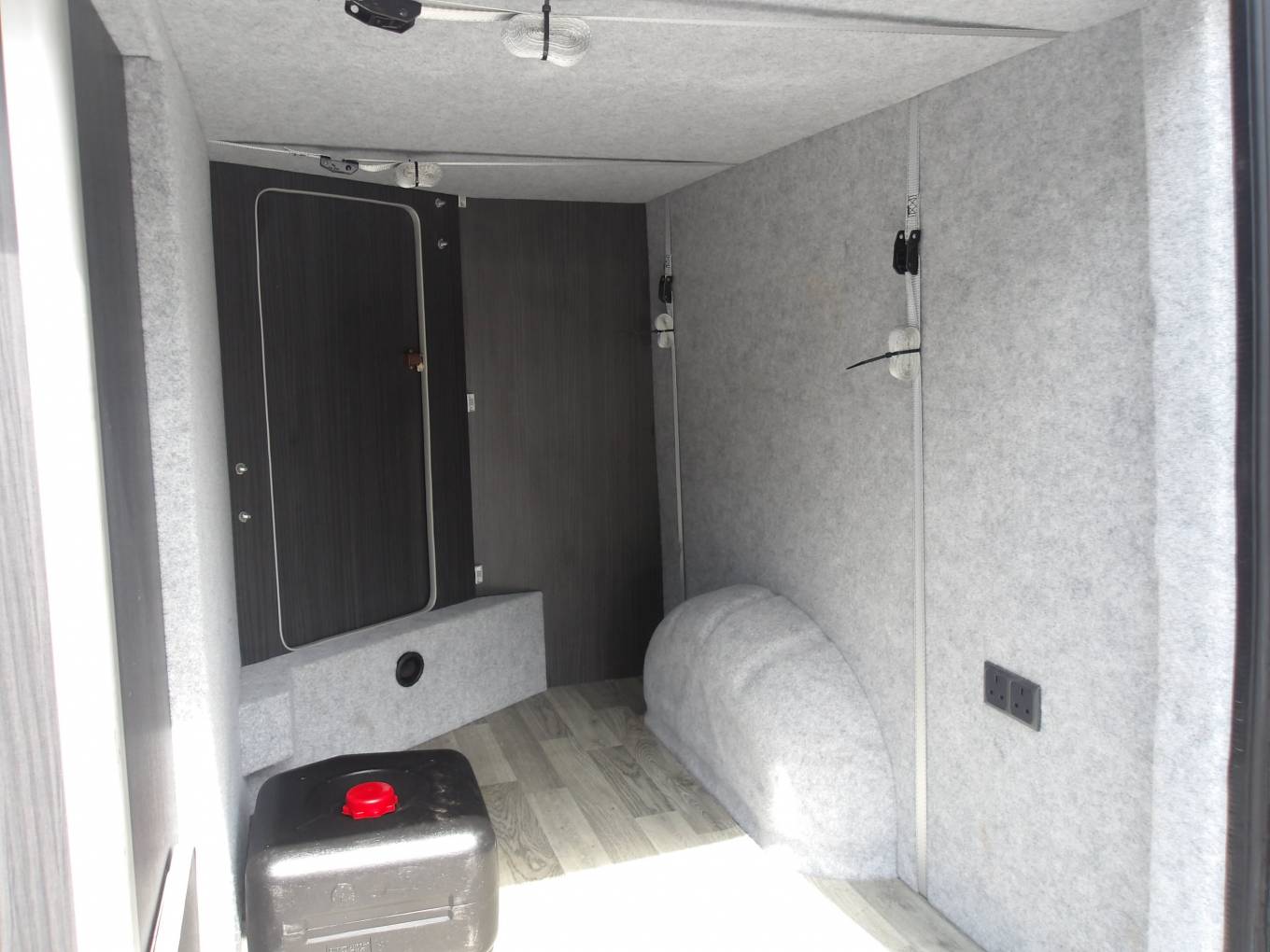 Large single fixed bed 180cm x 100cm to the rear with garage beneath; shower room along side with cassette toilet .