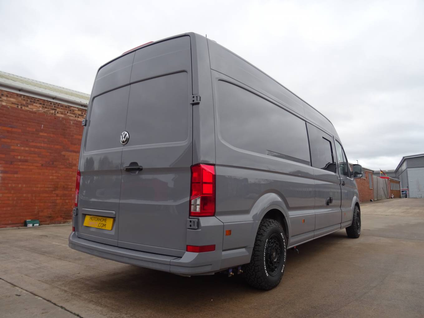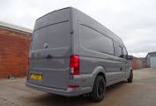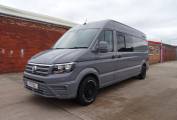 Volkswagen Crafter, high spec, newly converted race van, in stunning pure grey with off road all terrain alloys and tyres. It comes with a full-service history and twelve months habitation warranty.
