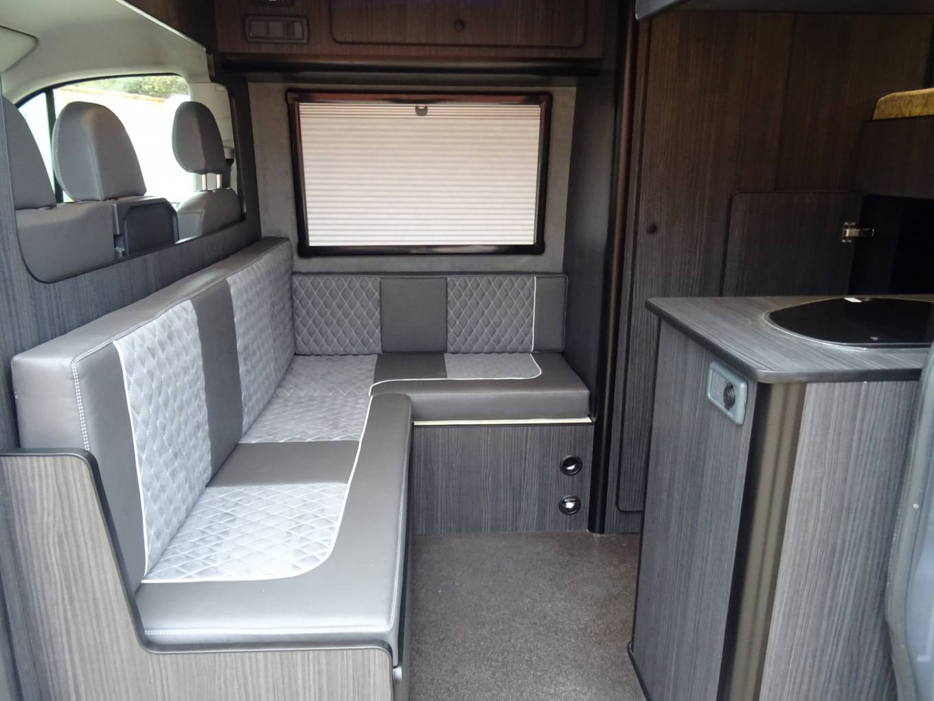 shaped seating area converts into a double bed. In the kitchen area you’ve a microwave,
