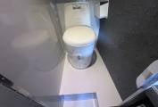 From the rear doors there is access to the storage area below the bed as well as services such as gas and the toilet flush tank.