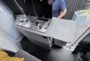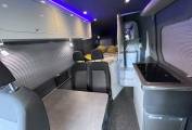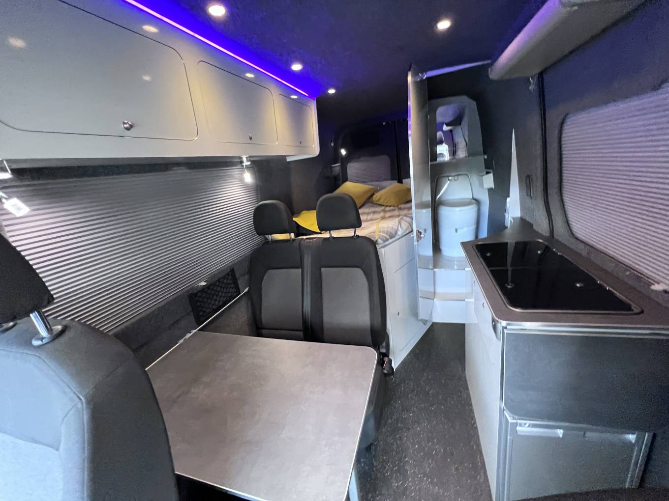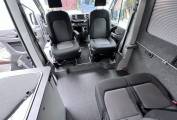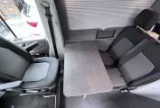 On entering via the large sliding side door, in front of you are the twin belted rear travelling seats which combined with twin swilling cab Captains Chairs make up the lounge area.