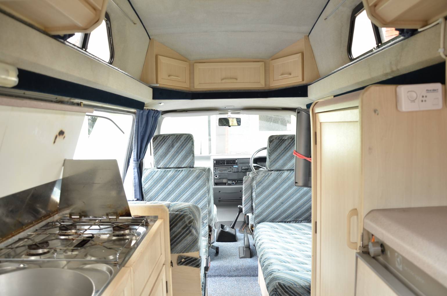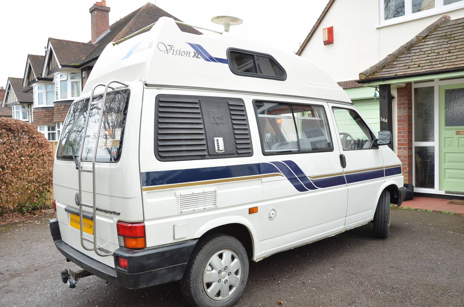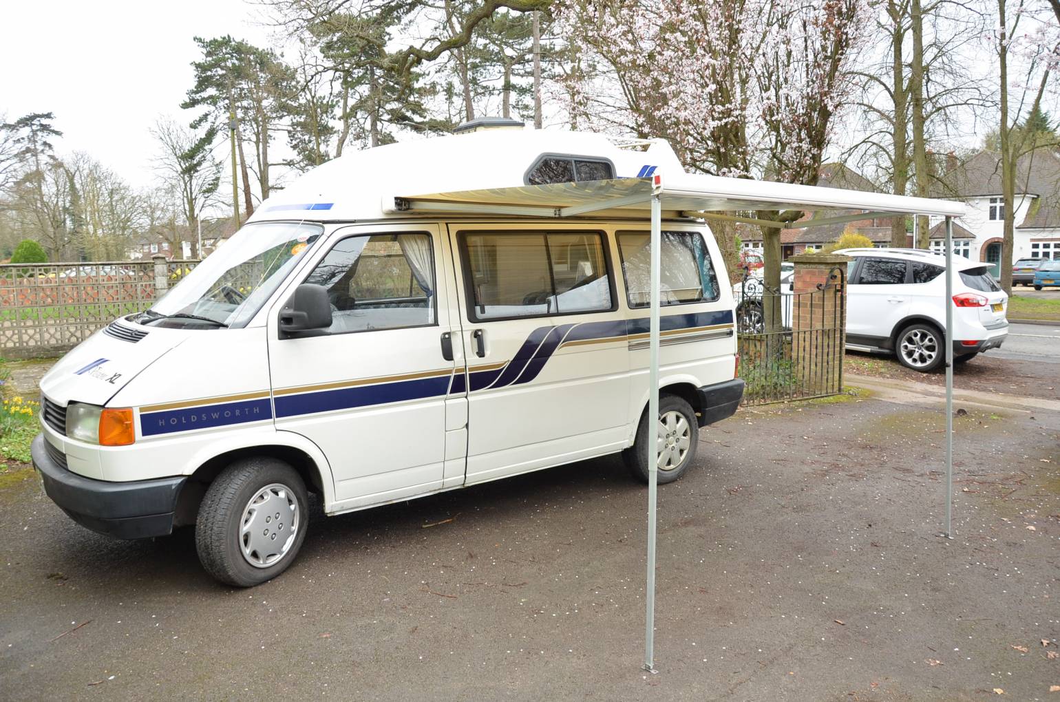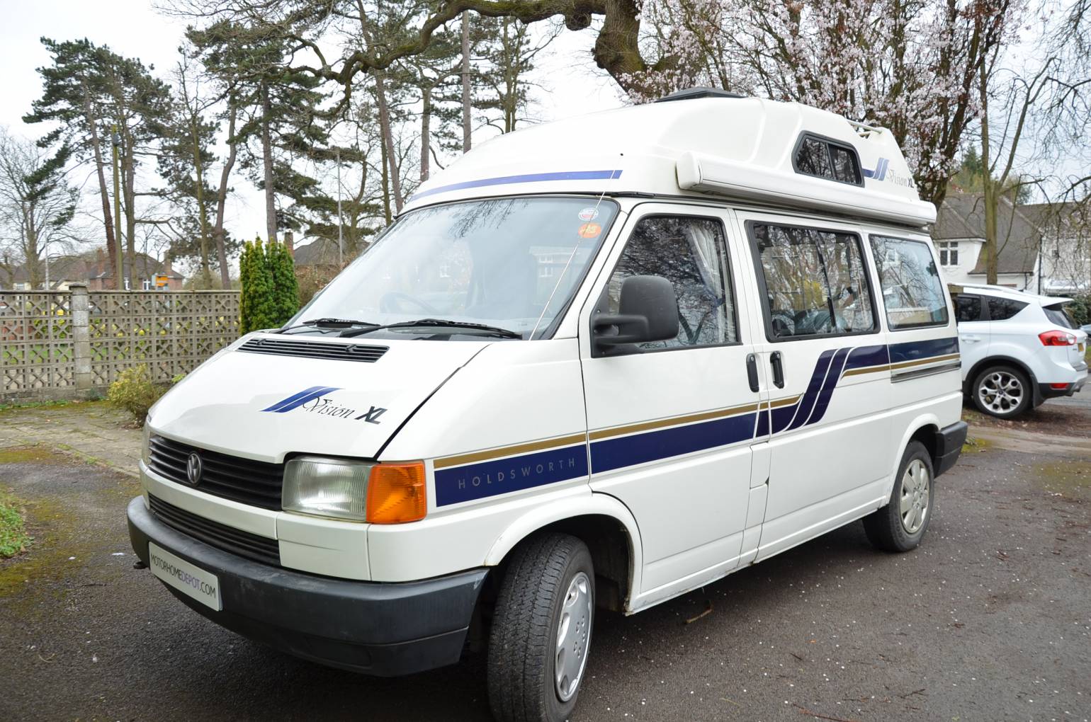VW Holdsworth Vision XL 2-berth high top camper van with rare automatic gearbox for sale. This is a nicely kept example that sleeps two in single beds when seating is re-arranged. Having 5 seat belts it means all passengers can travel in safety if the vehicle is used as a daily runner. Equipped with a gas hob, sink, fridge, gas bottles, 12v lighting, a Vision Plus Aerial and TV, and with a wind-out Fiamma awning on the side it has a nice specification. The upholstery is in clean condition and the carpeting is mostly covered and has apparently been there since new. A stow away table enables comfortable dining and the passenger front seat swivels to create more habitation space when parked up. The vehicle has excellent service and maintenance records with 6 pages of stamps in the service book, plenty of invoices and paperwork, and the original Holdsworth onwer's manual. MOT to end of June 2019, and the cambelt was changed at 85000 miles. There are some minor rust spots around the wheel arches in common with any vehicle of this age - We have a photo file showing the vehicle in detail so please call in the first instance to arrange access to this. Once you have reviewed these we can make It available for viewing by appointment with the owner in north Reading.