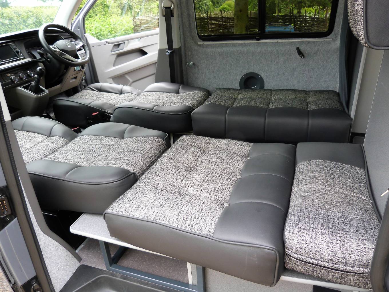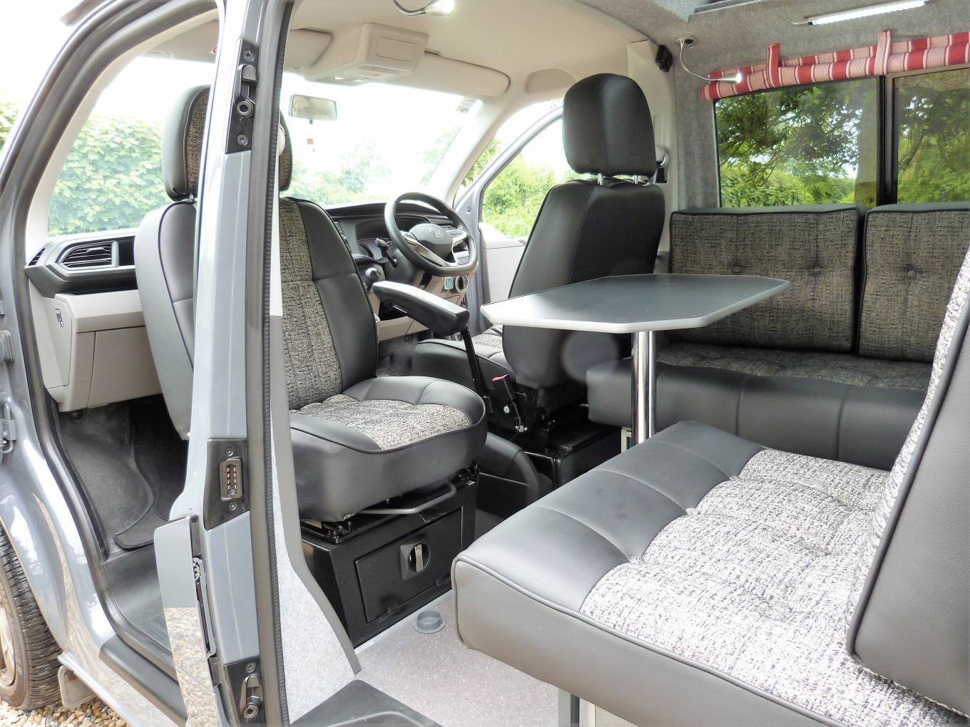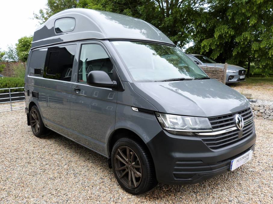 Call 01423 609985 for further information. This is a lovely, well presented Volkswagen conversion, by the renown Leisuredrive, based in Bolton. The Hi top, Vivante model, which sits on a SWB VW Startline chassis is a 2 berth campervan, with 3 seatbelts, ideal for 2 people touring or a day van and fits into a standard car park space being 4.90 metres long. It is in immaculate condition, inside and out. Registered in June 2021, with 1 owner from new, it has travelled 9003 miles, up to date service and MOT to June 2024. The rear kitchen comes with a sink, Dometic 3-way fridge with freezer compartment, 2-burner gas hob plus SMEV oven and grill. Opposite, again at the rear, is the Thetford toilet, not a Portapotty, which has 2 levels of cover, the higher of which then provides a good sized worktop. The camper comes with 1 travelling seat, with full seatbelt and opposite a sofa. The sleeping arrangements are 2 single beds, of approx. 1.90 metres in length, when used with front seats, or a large double bed. In the cab, the passenger seat swivels, there is a 5 speed gearbox, and media centre with radio, Bluetooth and car park assist. By turning the passenger seat, a lovely area for relaxing or entertaining is created. Additional features include, TV ariel, Webasto diesel heating, cruise control, reading lights and multi-function steering wheel. The bodywork, is a distinctive grey, and with 8 inch Wolfrace alloys and Michelin cross climate tyres, so it looks the part too. With internal height of 2 metres, no need to stoop or raise a pop top and there are plenty of 240v sockets and USB points too. This is a great layout and in excellent condition. Finance and part exchange facilities exist. Please call 01423 609985 for more information quoting reference 212284