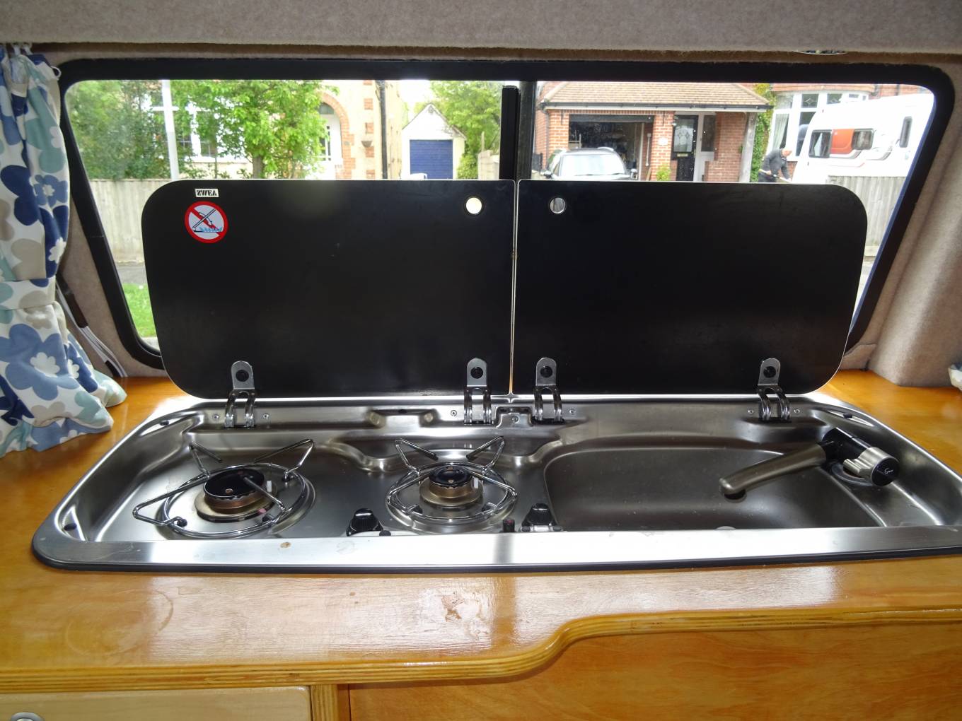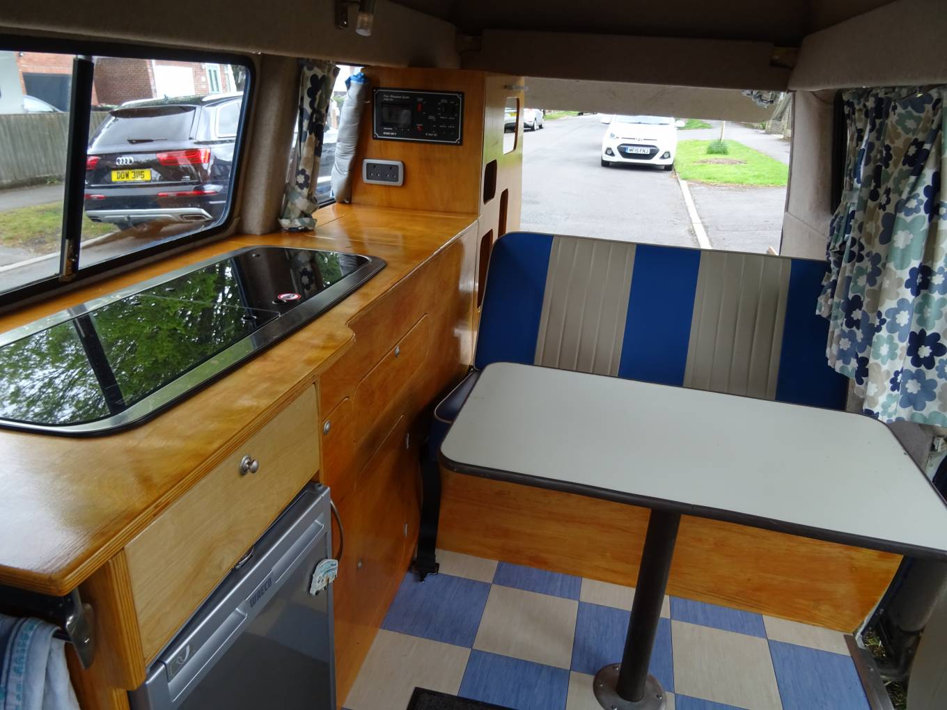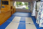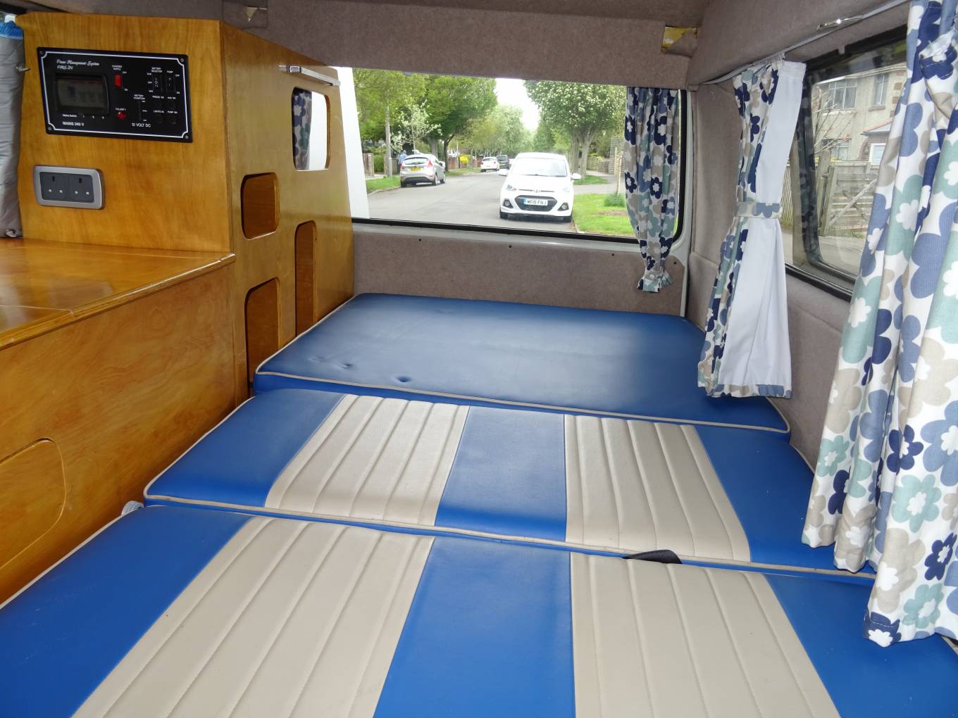 camper feel with re-upholstered seats in a stylish blue finish. To keep you