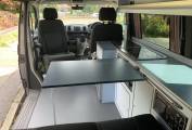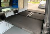 The rear travelling seats pull forward to make the large double rock and roll bed with storage around each side and underneath. Above this in the roof is another large double bed and the base of the roof bed also pushes up to allow for more head room when not in use. Around the Camper there are several drawers and storage cupboards so you are never short of space.