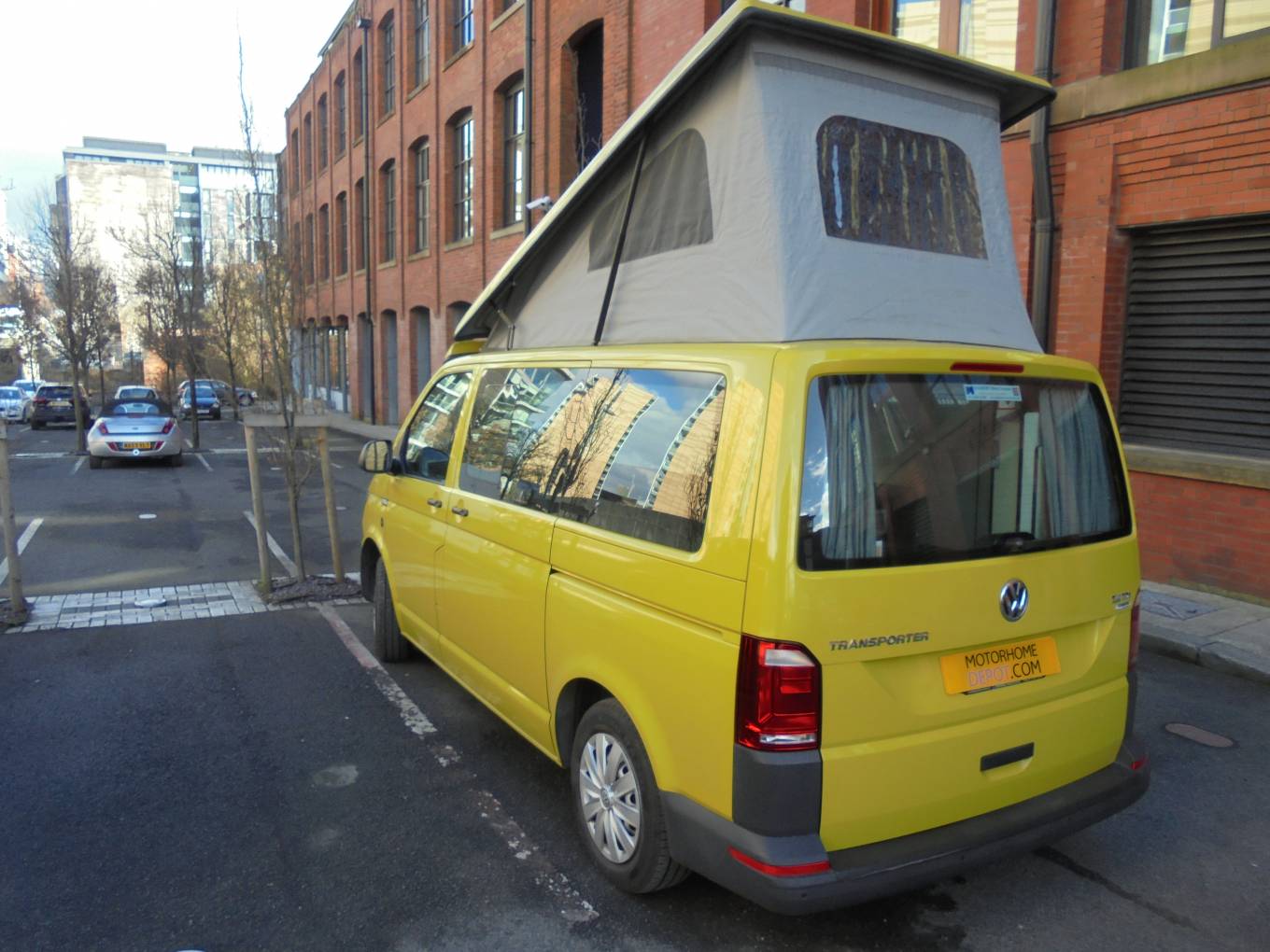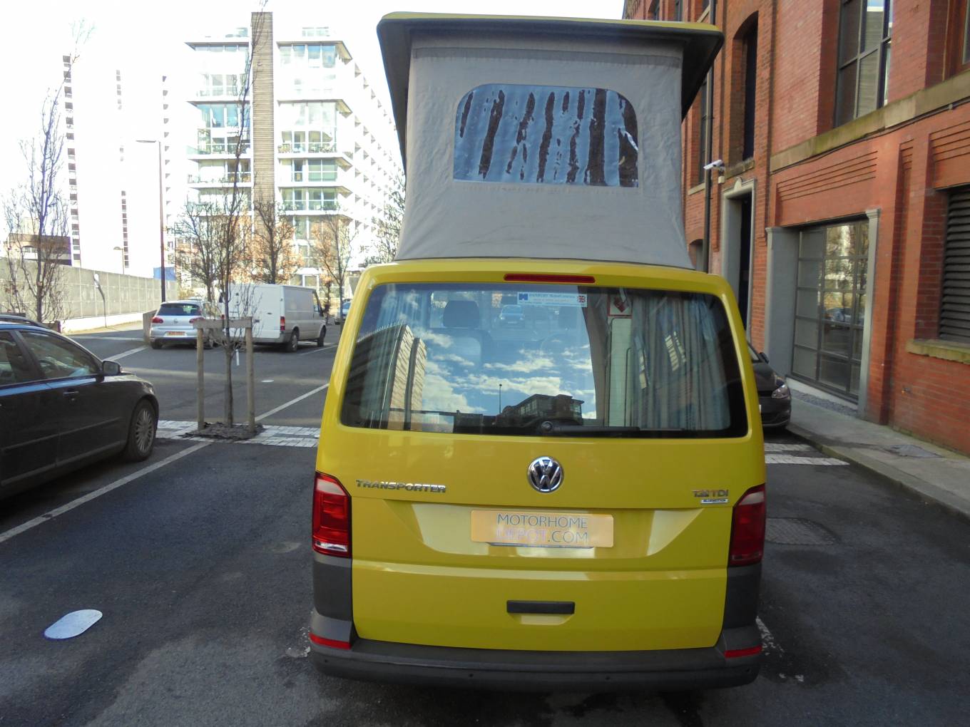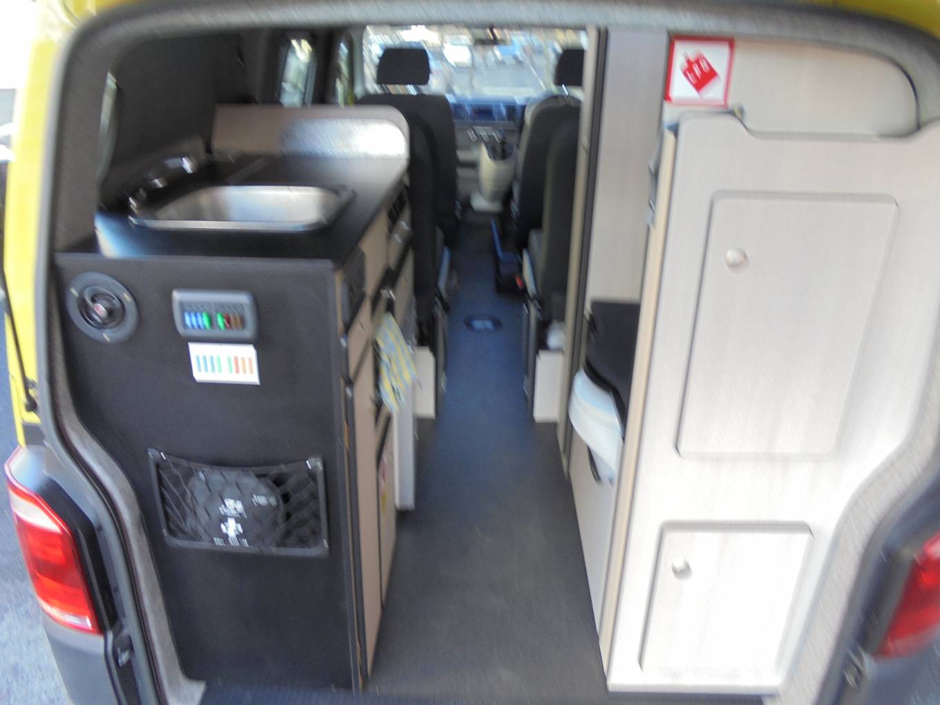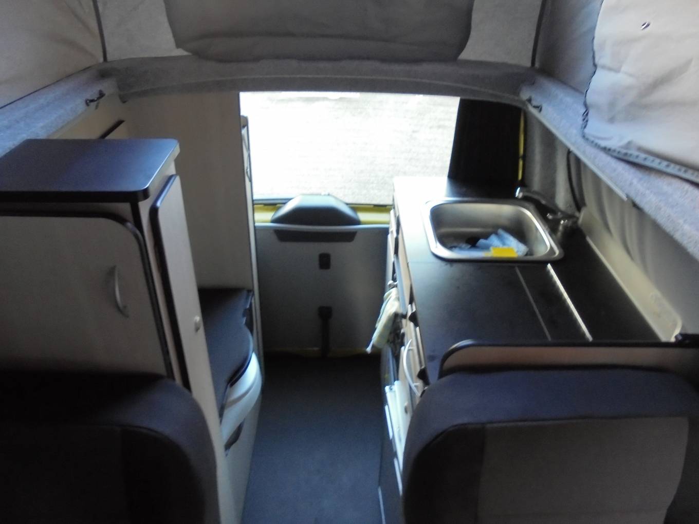 2017 VW Transporter Danbury Active conversion, this quirky Campervan is not your usual layout the vehicle compromises of two single beds, kitchen with 2 ring gas hob, grill and fridge. The camper has a full size cassette toilet to the rear with privacy panel, pop top roof, safe, 2 captains seats that become part of the single beds, table, 4 seat belts and reversing sensors.