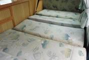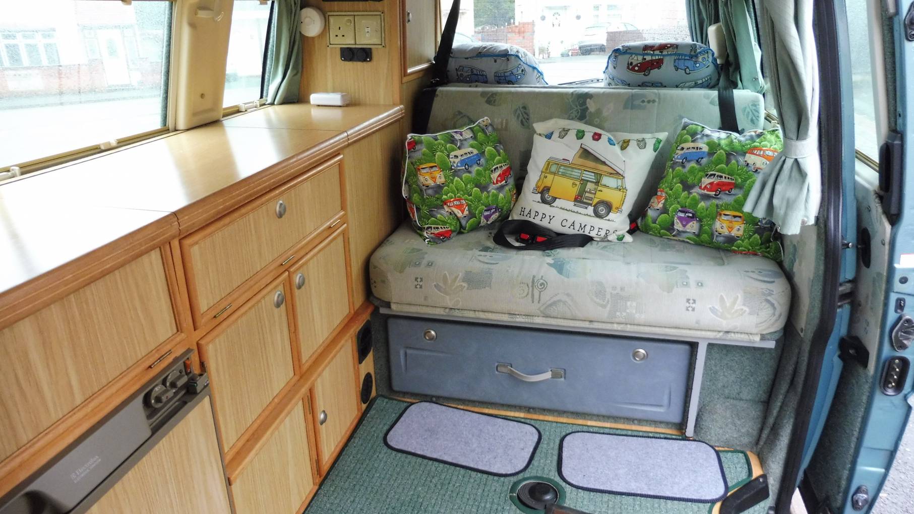 The Autosleeper quality is immediately evident when you enter the camper; a well thought out use of space allows for a side-kitchen with 2-burner hob and grill under, sink with draining board, Electrolux 3-way fridge and loads of storage options including a space for a portable toilet.
