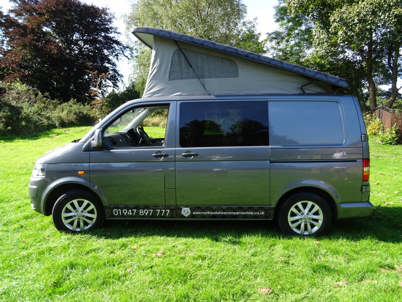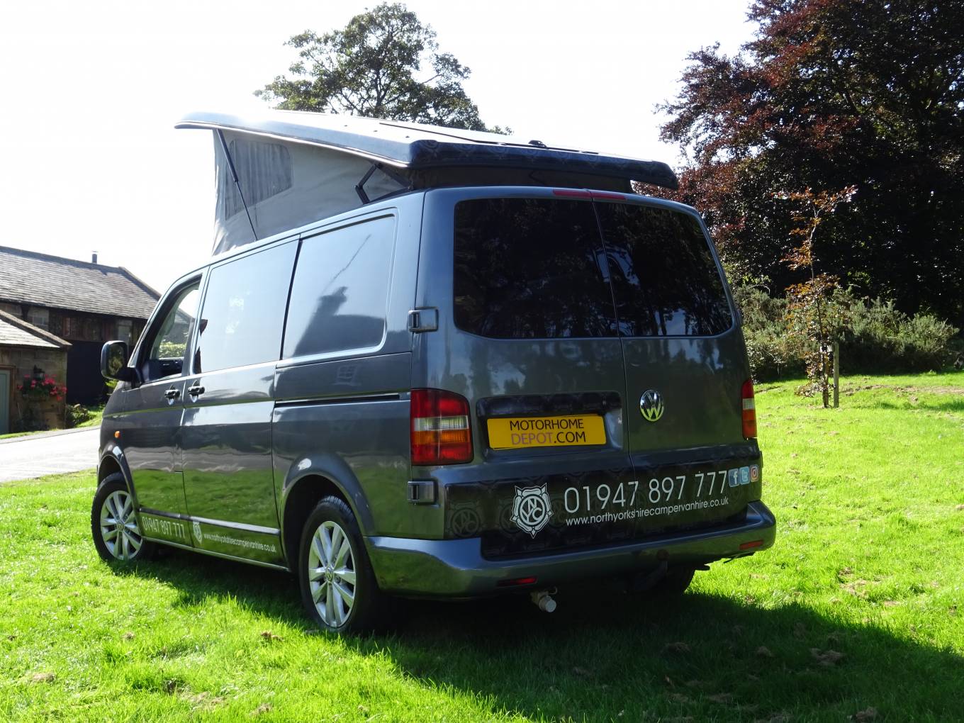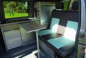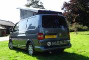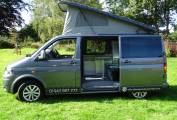 Welcome to the sale of this very well maintained, striking ex-rental camper van. Externally, the vehicle has a T5.1 front grill and lights, rear barn doors, front and rear parking cameras and a Westfalia removable tow bar. The vehicle is a high quality conversion completed by a local company in 2014, that includes a caravelle sliding seat system together with two swivel front single seats making this a very sociable and flexible area. there is also a rear mounted external shower (mains electric required) for hot water.