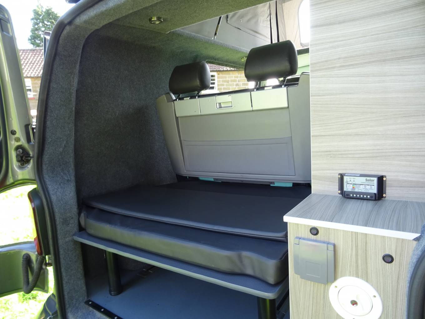 Mounted on the roof is a solar panel to charge the leisure battery for an off grid camping experience. The current advertising stickers can easily be removed.