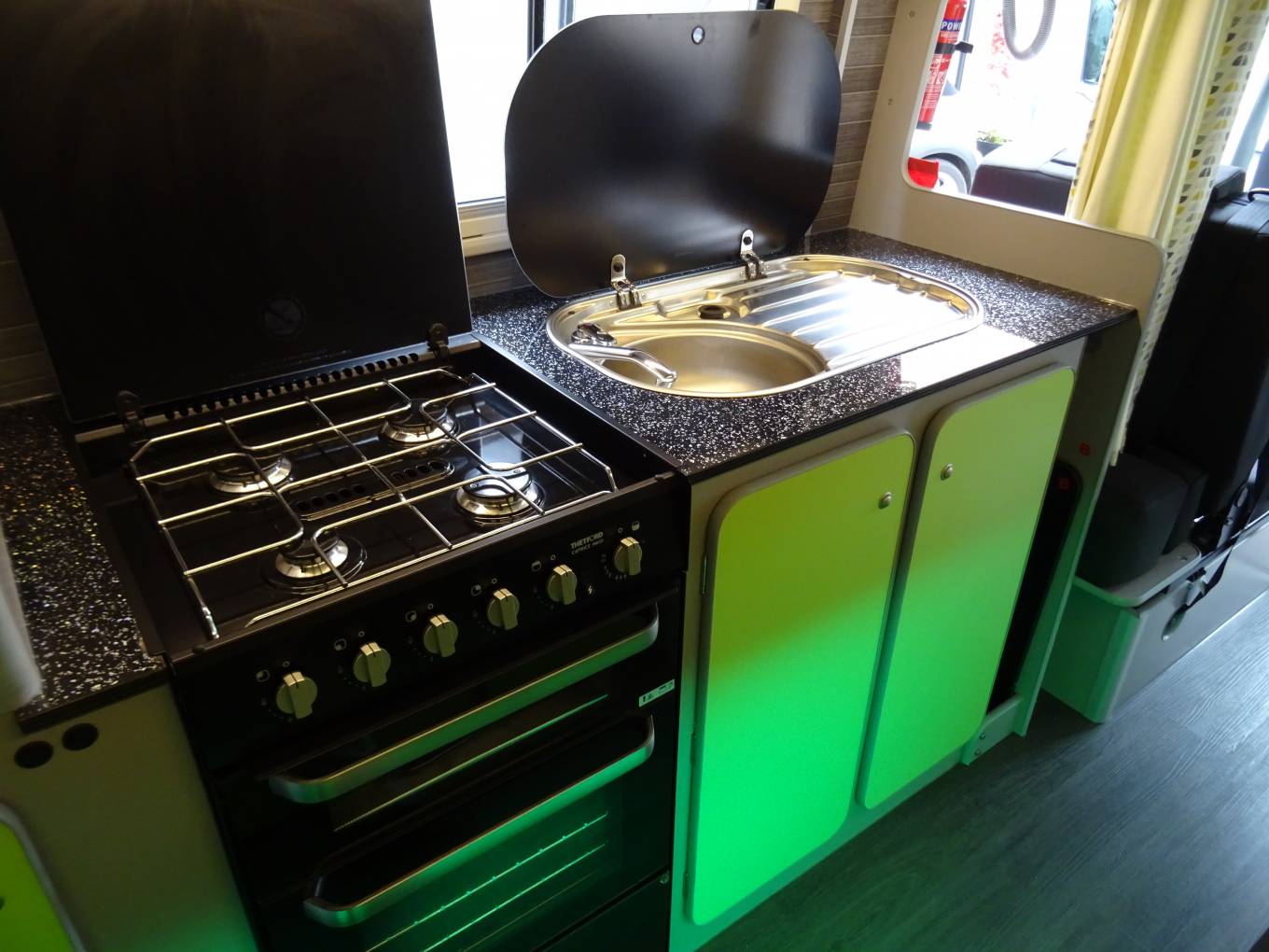 Opposite this is the kitchen units with hob, oven, sink and plenty of