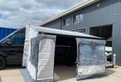 With 4 berths and 5 seatbelts this van offers excellent flexibility and comfort whilst being a really practical solution for your racing needs. This exceptional conversion features the “Premium Grand Touring” specification and boasts an enviable layout with a large rear upper-level fixed bed above the rear garage, a kitchen area with fridge freezer, stainless steel sink with mixer tap, twin burner gas hob, microwave, and good storage space. There is an enclosed washroom with cassette toilet, shower and LED lighting, the lounge/dining area has a side sofa with room for two and the front twin seat easily revolves to give seating for four around a pedestal table. At night-time, the sofa easily converts into a second double bed and the cab area is screened off by black-out curtains. The garage is of course a major feature with check plate aluminium lining on the sides and the doors and base. Currently it is set up for karting and has plenty of room for tools and equipment. There is an excellent specification including, air blown heating and hot water provided by a Truma combi boiler, a Fiamma awning & privacy room, TV, LPG tank, 12V lighting throughout, external gas BBQ and shower points, split charger, electrical hook up point and much more.