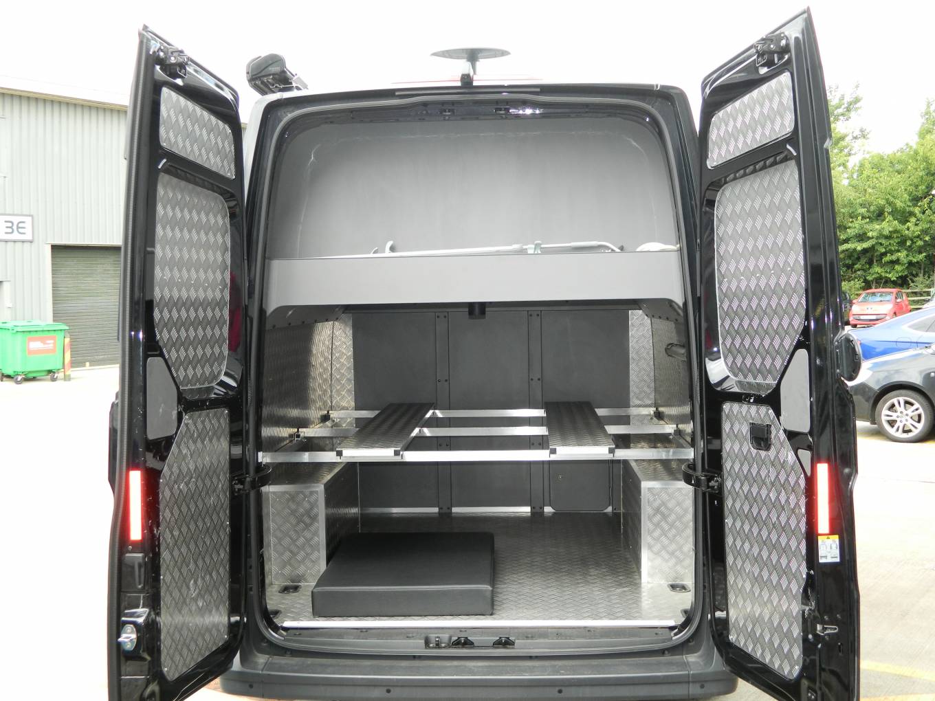 The base van is the excellent Volkswagen Crafter CR35 Trendline with a 1968cc engine linked to a manual 6 speed gearbox. There is air con, DAB & Bluetooth media system with Carplay, reversing camera, parking sensors, electric windows, steering wheel remote controls and cruise-control. With only 14,000 recorded miles this is a superb van offering excellent value for money.