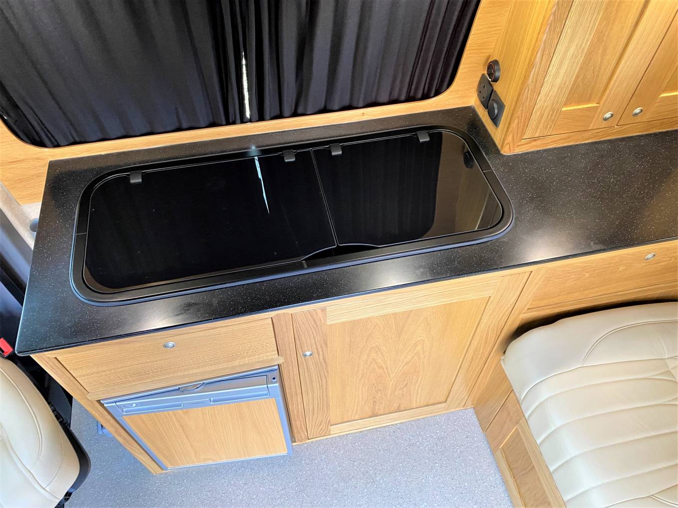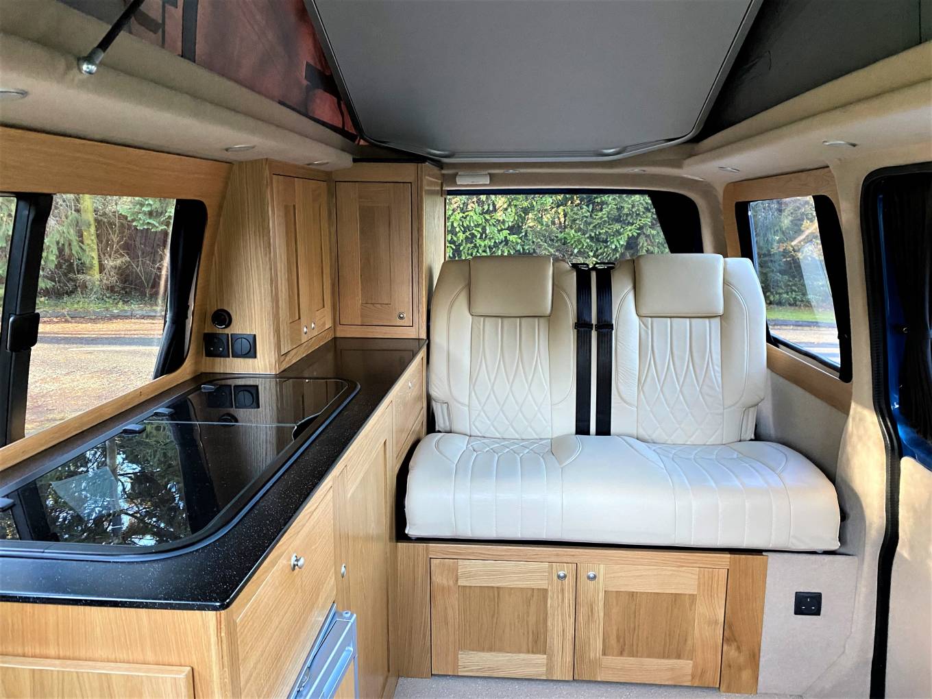 The VW Highline spec includes cab air conditioning, cruise control, quick clear windscreen, auto lights and wipers, App connect, leather multi function steering wheel, front and rear parking sensors and much more... the interior has been finished in genuine leather which adds to the amazing feel of this high end conversion.