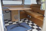 and all around the camper, there is also a retractable table which is easily