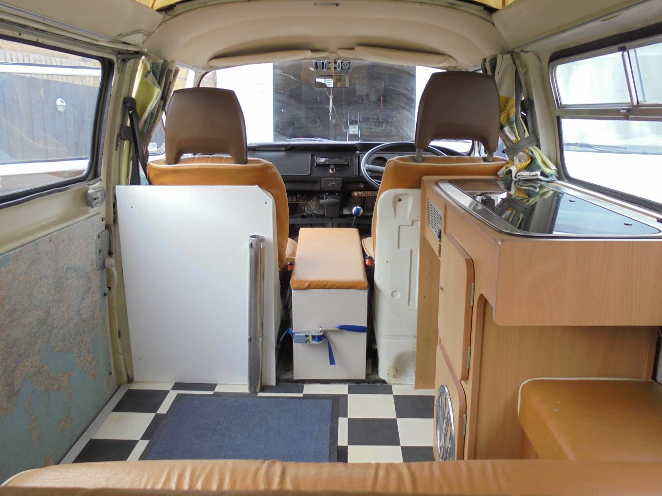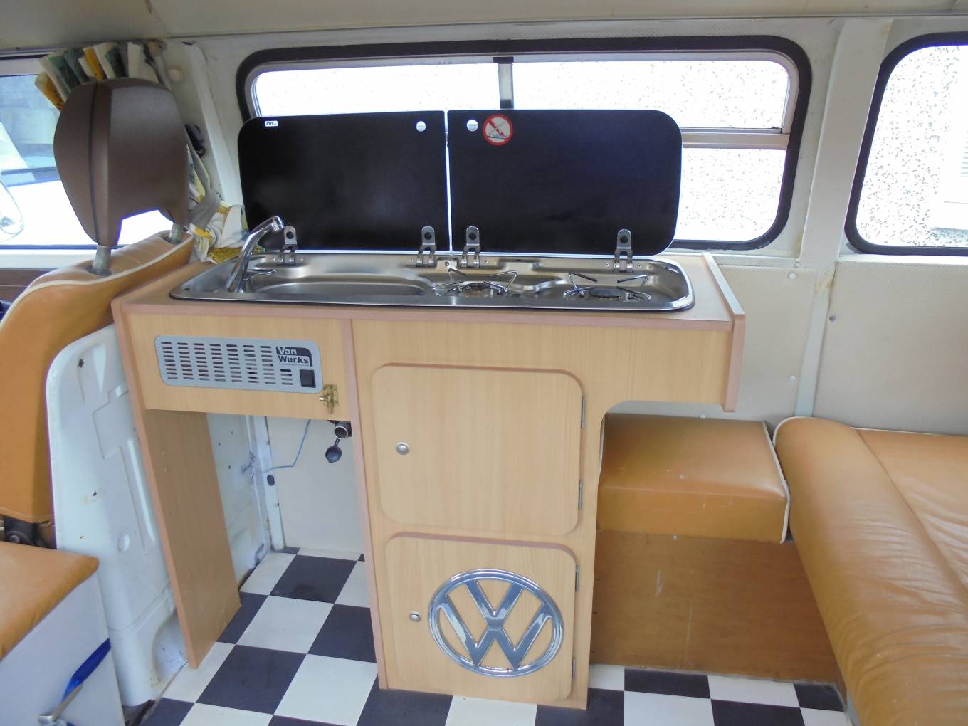 of the vehicle has a 2 ring gas burner hob and a sink on top of the original