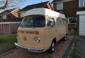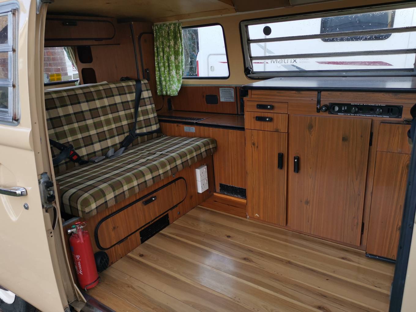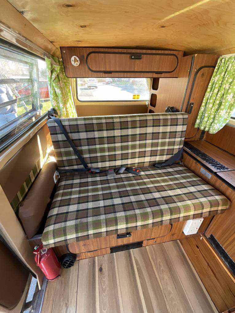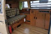 The current owners have had the van for the past 15 years and have enjoyed many family holidays both home and abroad. However, with the boys growing up we have made the decision to downgrade to a motorhome. I have spent a small fortune very recently on this van to restore the body work as rust was beginning to take hold. This includes all new inner and outer front wheel arches, rear wheel arches, full length inner and outer sills, sliding door outer skin, rear tailgate outer skin and a partial respray of the interior and exterior in the original mexico beige and a complete new set of german quality rubber door seals. To ensure the inside matched the renewed sheen of the body work , I also revamped the interior. Inside, there is a full set of gorgeous westfalia plaid interior door panels, stainless steel door handles and stunning birch ply headlining. I also replaced the upper bed woodwork, removing the old chipboard bed risers and replacing them with beautifully varnished birch. The tatty vinyl fibreglass roof headlining was also removed and replaced with a more functional material that ensures condensation cannot gather on the roof and drip onto you while sleeping! Other features include blackout curtains with a white flower design (blodwyn!) and chair storage pockets in matching beige plaid. Externally there are stainless steel hubcaps, stainless steel exhaust, original special edition chrome front and rear bumpers and pressed metal classic number plates. As a result, she is a gorgeously eye catching van and I will really miss all those compliments and conversations we have had over the years on campsites and from passers by. It’s important to realise that his van is a little special! She is a LHD, set up for reliability and durability and unusually therefore has been converted to the rock solid VW AAZ 1.9 turbo diesel engine. This engine has never let us down and while not giving any increase in speed over the original air cooled, delivers around 35 - 40mpg fully loaded and starts on the button every time. I have also installed an additional external oil cooler and fan to keep the temperature down on those long hill climbs! As this engine is water cooled, there is also a blown air cab heater to defrost the windscreen and take the chill off. The van has just been through an MOT, and the final bit of welding on the chassis completed to ensure it is rock solid. It also has a new alternator belt and oil and filter change as part of the MOT. A new timing belt kit, alternator and water pump were fitted approximately a year and a half ago. This summer, the van also had a new set of rear wheel bearings and a front roll bar. As this van looked after a family of five as well as being used for various outdoor expeditions, I have equipped it with a number of features for it to remain off grid for short periods of time. This includes three 100w solar panels installed on the roof, which feed a good quality AGM leisure battery. Under the rear bench seat is a combined 20amp battery charger and 2000w inverter. This means if you are not on electric hookup, you can access 240v ‘mains supply’ via the inverter linked to the leisure battery…...great for keeping laptops charged! When plugged into a hookup, the inverter/charger automatically charges up the leisure battery and runs the various 12v systems on board such as the fridge. There is also a heavy duty split charge relay which allows both leisure battery and van battery to be charged by the alternator when the engine is running, but also allows the van starter battery to be charged by the onboard battery charger and solar panels. To complete its off grid credentials, I also had a diesel heater installed last year which was a wonderful investment and warms up the van instantly and can be operated by remote control or via the panel installed on the dashboard. This can be used both when the van is moving and when on site, requiring very little current from the leisure battery and draws tiny sips of diesel directly from the van’s fuel tank. This van has the coveted super viking roof, which pulls out to overhang the side of the van, and in its current setup has one double and one single bed available. I have modified the upstairs slightly from the original setup to lengthen the two upstairs beds and allow us easier access to the roof beds and use the remaining space for clothes storage! The ‘canvas’ is the original VW vinyl which I have often thought of replacing, however this is an aesthetic decision as it is still waterproof and very rugged, having stood up to some very stormy weather. I have also recently replaced the roof handles and catches to something a little sturdier. The photos hopefully show off the lovely original westfalia interior. I re-upholstered the front cab seats and rear seat about four years ago and the rear seat folds down into a 3/4 rock and roll bed. This rear seat also has two diagonal seat belts and a centre lap belt installed. The kitchen area has plenty of space for pots, pans, plates as well as space for a campingaz gas cylinder. Two drawers, one for bits and bobs and the other a cutlery drawer. It has a double gas hob and an electric pump providing water to the sink from the onboard water container. The front passenger seat swivels round, which is really useful to create extra space and the original fridge / cooler box runs off the 12v system and still works superbly...ice cold. There is a really useful external 240v power supply hidden under the van which allows you to connect an extension lead into a drive away awning for mains power. This can also be fed by the inverter if you are ‘off grid’. There are also a few additional 12v sockets dotted about the van which I have installed, mainly for the kids to keep their various gadgets charged on long journeys!