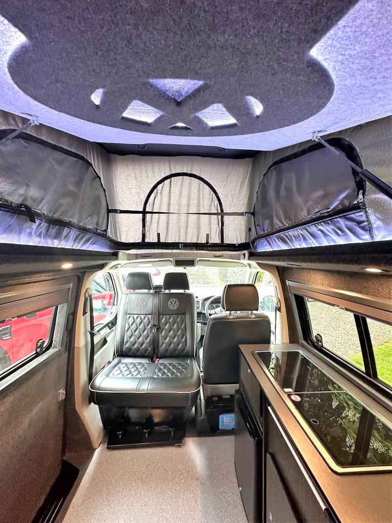 the West Dubs pop-top roof space that features three zip-up windows, reading light