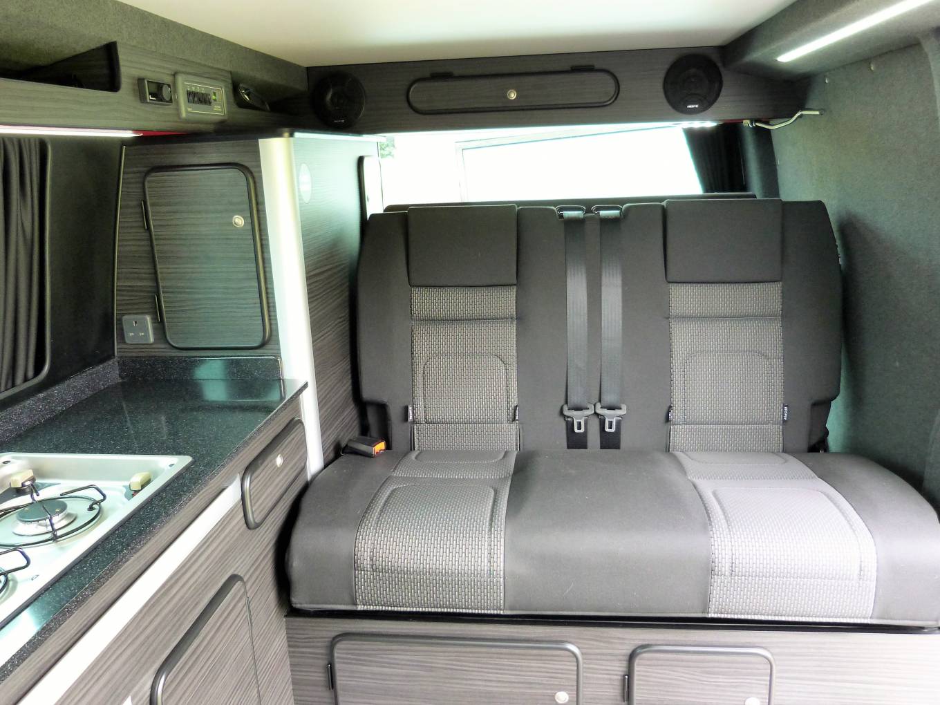 Call with any questions on 01423 609985. This T6.1 Transporter, T32 TDI Kombi Highline, VW conversion, is stunning, inside and out, being undertaken by the renown Vanworx. Vanworx are fully accredited by Volkswagen, with Whole Vehicle Life Approval. It is registered as a motor caravan on the logbook, so cheaper insurance vs a panel van. Bought from new, by the current owner, this T-32 it has extra features to the Slipper base model, on which its base. Registered in October 2021, the full specification is listed below, for this VAT qualifying, superb looking, VW with Indium Grey coloured bodywork, 18-inch Avon AX7 tyres, Supermetal black gloss alloys, RIB bed and memory foam mattress in the pop top, fridge and 2 gas burner hob and swivel seats up front. It has travelled 7445 miles has full service history. As a SWB, it will fit into normal car park spaces, with assistance from rear view camera, front and back parking sensors and for easier driving, DSG automatic transmission, air conditioning, adaptive cruise control and speed limiter. For security, a tracking device is fitted. The more detailed specification includes.