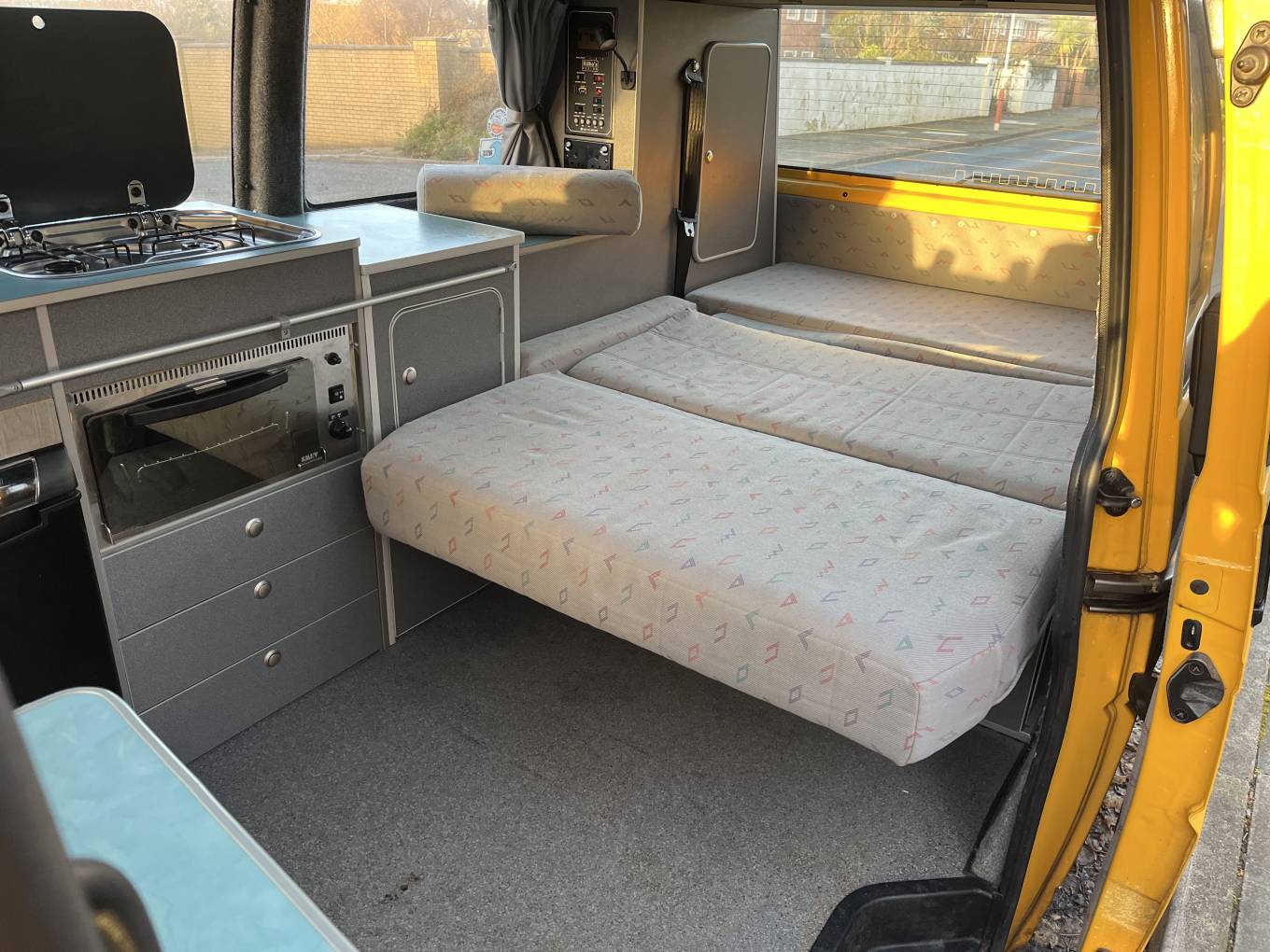 VW T4 Bilbo High Top, this is a 4 berth with 2 previous owners and 47,502 miles on the clock. It has been well maintained with good service history, last service and MOT November 2023, it has a 2.0 petrol engine and is in excellent condition. It is a LWB with rear Rib Bed, 4 Seat Belts and overhead there is a double bunk. It comes with Hob, Grill, Oven and Fridge in the kitchen area and also has Mains Hook Up, Leisure Battery, On Board Water Tank, Tow Bar, Porta Potti, Gas Bottle, DAB Radio and an additional rear seat which bolts to the floor. A great little van, fantastic value, available for viewing by appointment in Southport. Call for more photos, videos and information.