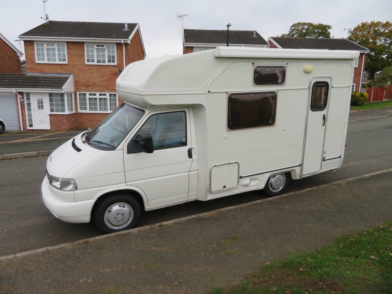 This popular small VW coachbuilt measures less than 16 feet long and so is small enough to get around those country lanes yet inside has ample space to live and sleep in.It has a great Great specification: Truma gas wall mounted heater, Truma hot water boiler, Electrolux 3 way fridge (gas/12v/240v), 3 ring gas hob, gas grill, gas oven, kitchen sink with hot/cold tap, Thetford cassette toilet, bathroom sink with hot/cold mixer tap that extends for use as a shower, TV aerial, rear ladder, 240v hook up, fresh water tank, waste water tank, 240v sockets, 12v sockets, zig unit, leisure battery, wardrobe, lots of cupboards/storage, fly screens/blinds/curtains, cooker extractor with lights.
