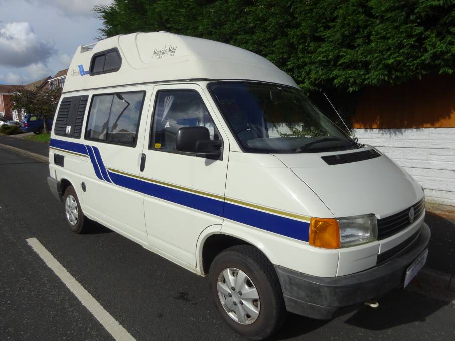 Located on Merseyside, we have a superb 2 Berth High top Campervan with 4 Seatbelts. It has a rear kitchen, bike rack, tow bar, roof rack and ladder. This short wheelbase VW has excellent bodywork along with a great service history and has been well cared for.