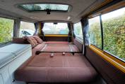 For sale we have a 2001 VW T4 Transporter in mustard yellow. This Kombi van was converted by Murvi Motorhomes who are a long-established motorhome converter based in Devon. The engine used on this campervan is the 2.5 litre turbo diesel producing 88bhp and linked to a 5-speed gearbox.