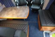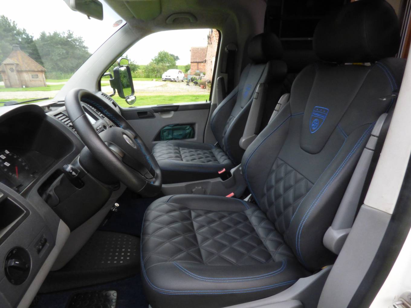 From an interior perspective the vehicle is in excellent condition. Sleeping accommodation can be found in a large rear French style bed (with new memory foam mattress) next to the comprehensively fitted washroom, both of which can be closed off from the rest of the motorhome. The forward saloon area quickly converts to a large single bed. The driver and passenger seat both swivel to face the rear of the vehicle and make up a seating/dining/socialising area for up to 6 people. There is a large TV and DVD in this area too. The kitchen area has a 3 ring hob, large sink with mixer tap, recently acquired under counter large fridge with inbuilt freezer compartment, numerous drawers and airline style overhead lockers which have new dampers fitted to the opening mechanism. Opposite the kitchen is a large wardrobe with fixed hanging rail and safe. The washroom comprises a Thetford cassette w.c. a vanity unit with sink and mixer tap and a full size shower with mixer tap, protective tray mat and separate folding door to keep the shower private within the overall washroom. A tambour style sliding door has been fitted to the bathroom for convenience but for VW enthusiasts looking at authentic specification, the original washroom door and bed mattress are included in the sale.