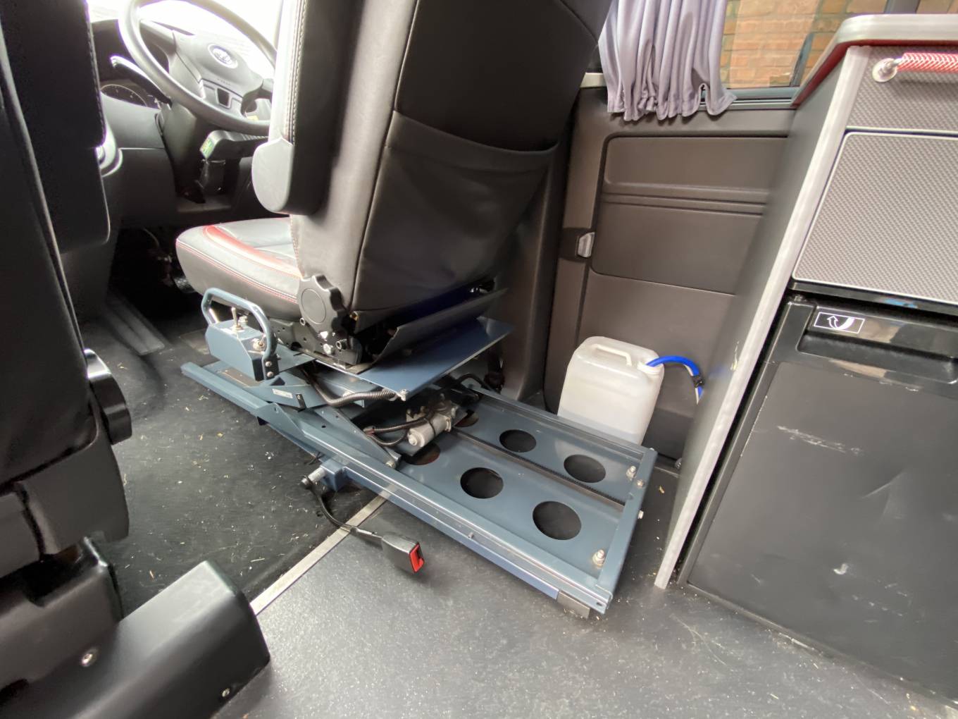 This Automatic VW Camper has full Mobility Hand Driving Controls, Electrically Adjustable Drivers Seat for Height, Swivel, Forward and Backward movements.