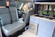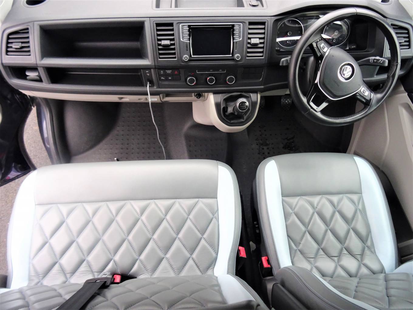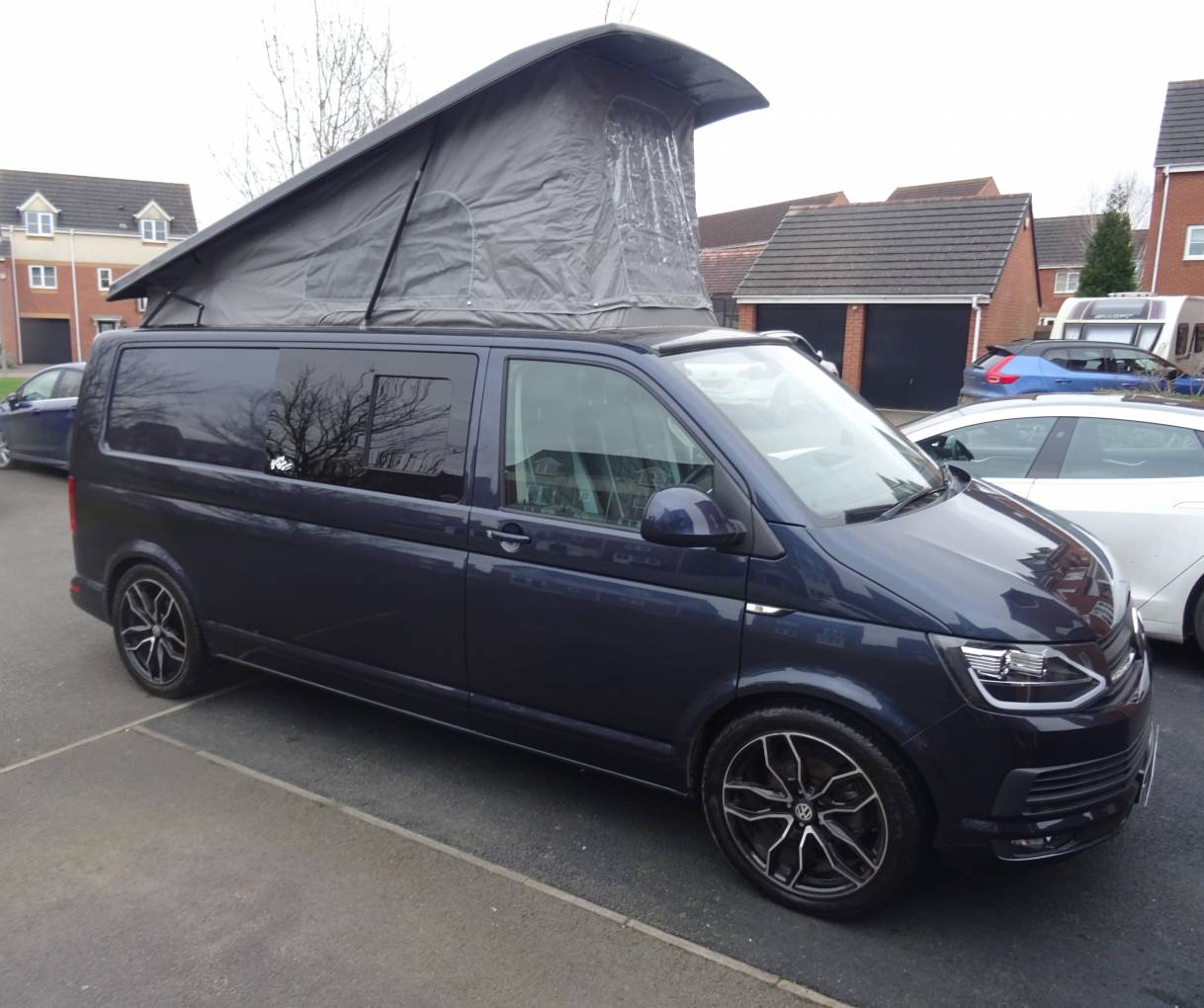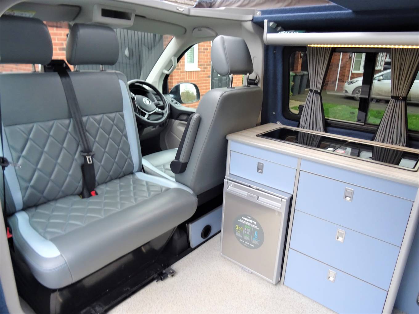 Features: Leather Seats, Cruise Control, DAB Media Pack, with Android Auto, Apple Car Play, Sat Nav, Bluetooth, USB Points, Cab Air Con, Electric Windows/Mirrors, Rear Parking Sensors, Reversing Camera, Ghost Immobilizer, Alarm, ABS, Traction Control, 150W Solar Panel, Auto Stops Sunset Pop Top, Alloy wheels, Upgraded Headlights, Spare Wheel, Removable Tow Bar Mounted Bike Rack. All in all a high quality, very well built and comfortable VW Campervan on the sought after LWB. Please contact Jan and Paul for more information and extra photos.
