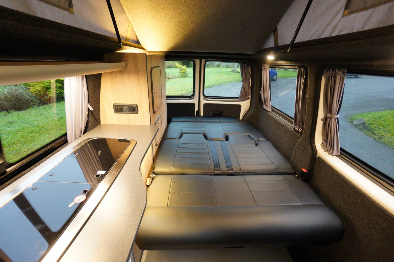 The habitation windows are all tinted with an opening sliding window by the sink / hob. Black-out curtains are fitted to all habitation windows and the acoustic and thermal insulation used is of a high specification throughout making for a quiet warm interior.