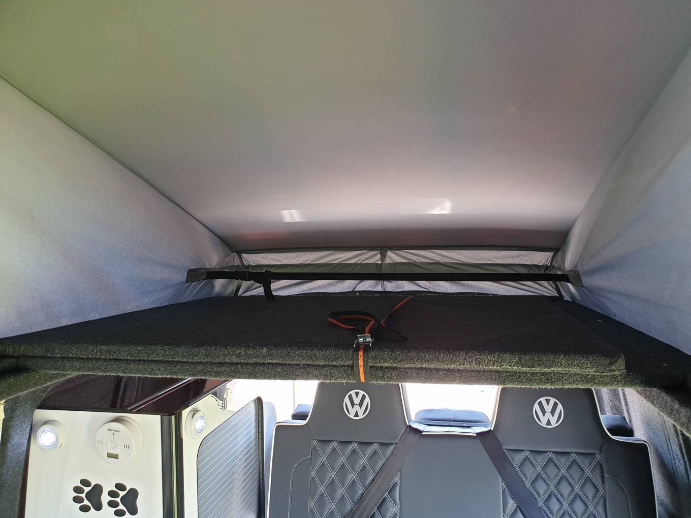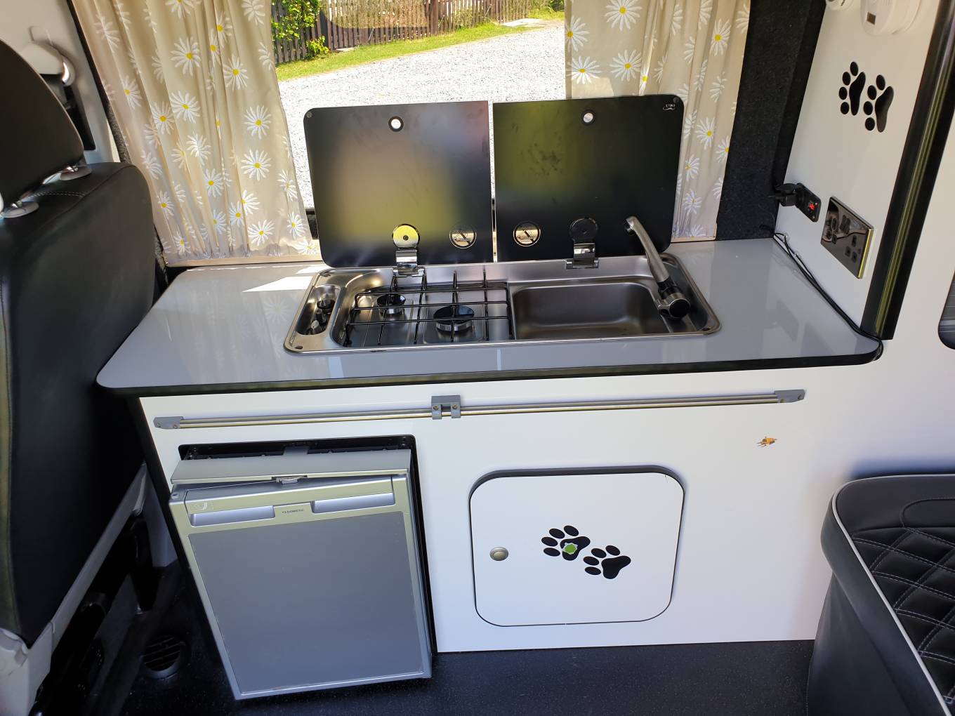 camera, pop-top roof, rock and roll double bed, gas hob rings x2, cold water sink,