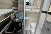 plumbed-in cassette toilet, hand washbasin and wrap-round shower space.