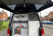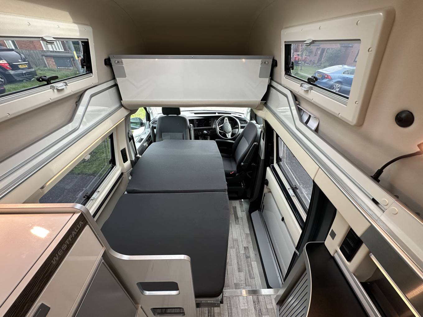 warranties. Among other things the camper comes with cab air con, cruise control, reversing camera, sat nav, internal and external cab window covers, solar panel, two leisure batteries, wind out awning and tow bar.